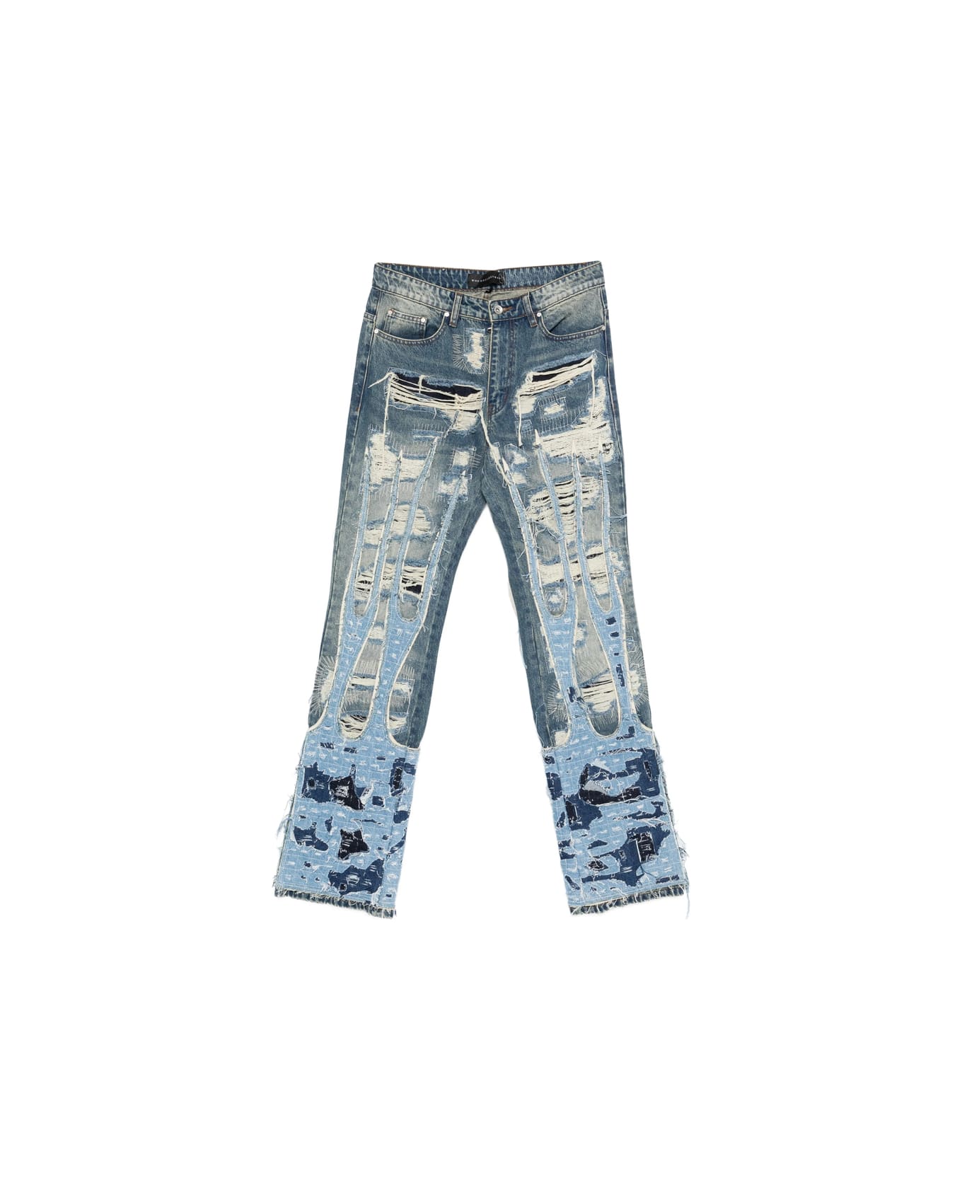blue patchwork design ripped details frayed hem