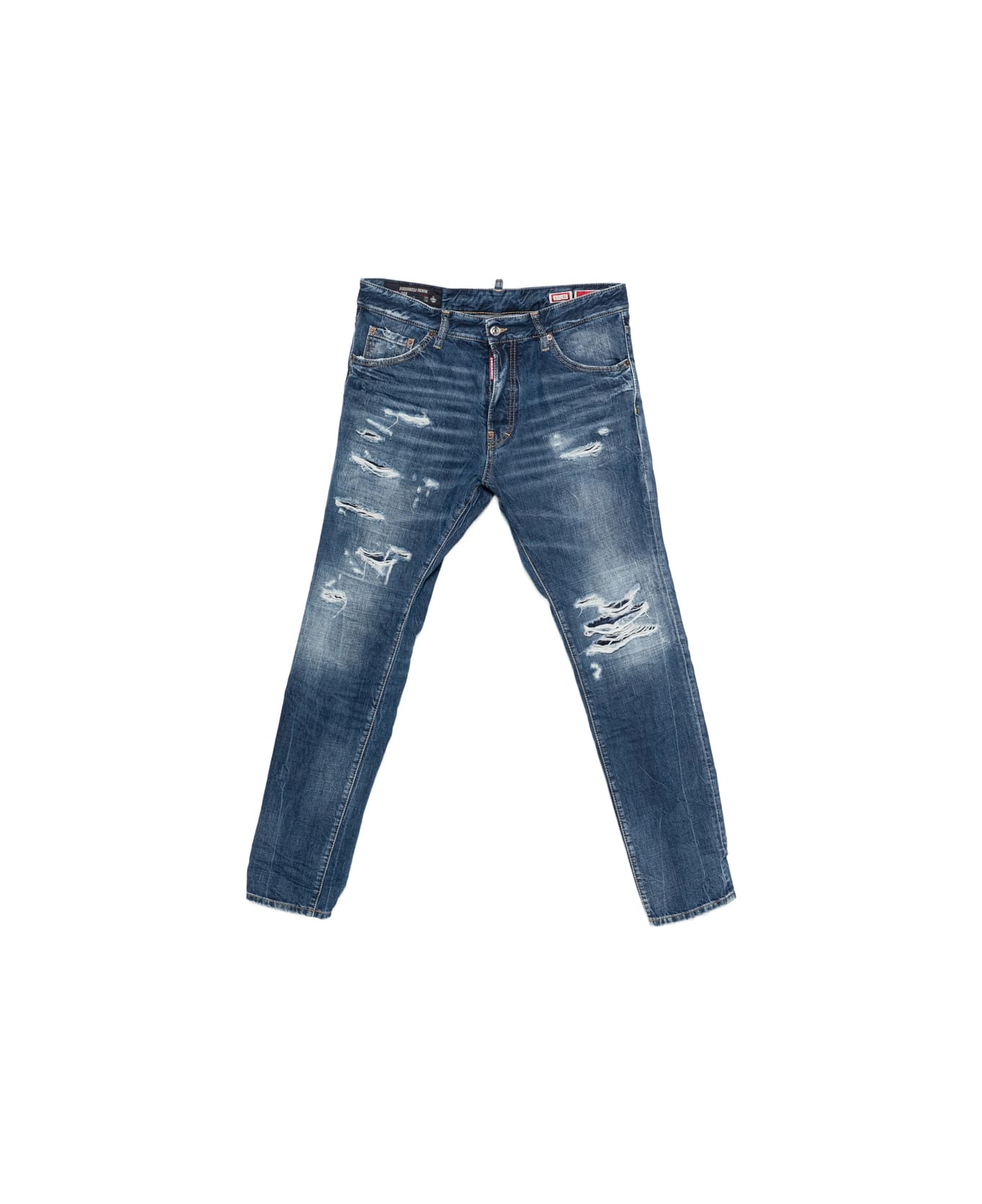 blue distressed effect five pockets belt loops button fly fastening