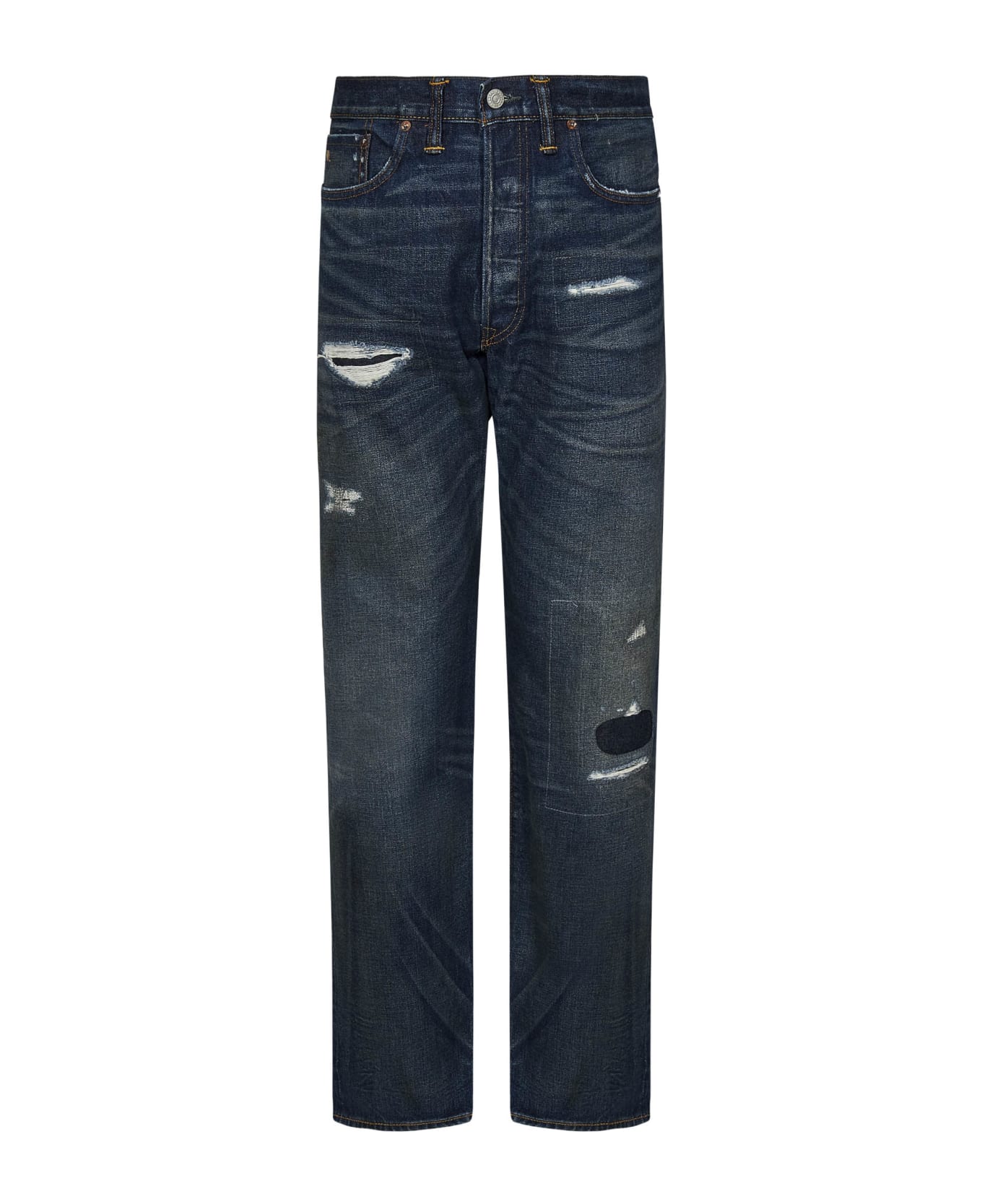 Composition: Covered Front Closure With Exposed Button Waist With Belt Loops Five Pockets Embroidered Logo On The Fifth Pocket Logo Label Sewn On The Back Contrasting Stitching Hawley Wash With Distressing And Distressed Details Straight Leg Color: Dark Blue , 100% Cotton Made In Usa