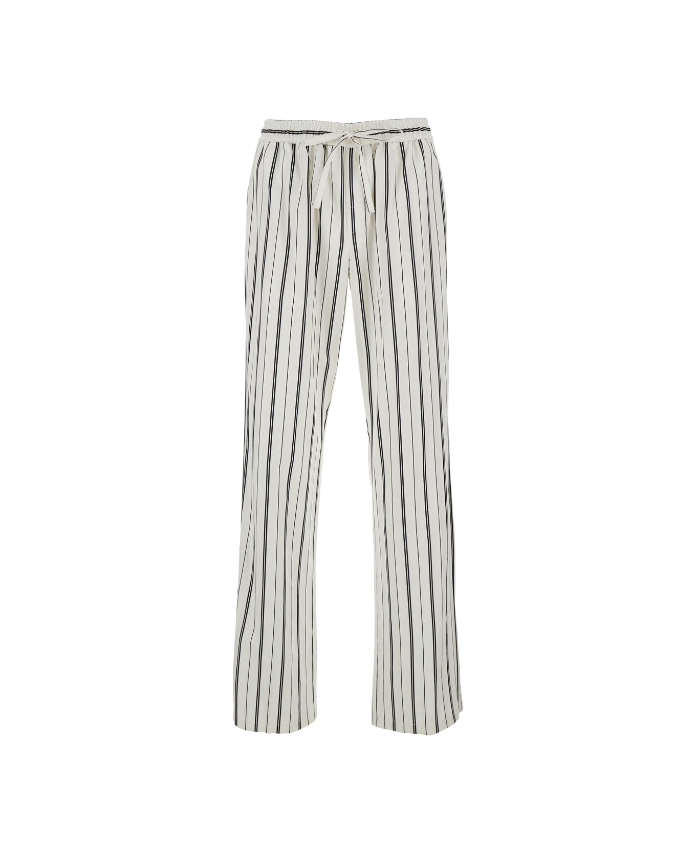 Pants with vertical stripe design. White/black color. They feature a high waist with an internal elastic, two side pockets, and a back pocket with flap. The leg is straight and the hem is straight. Made of Cotton. Regular fit. Composition: 100% Cotton