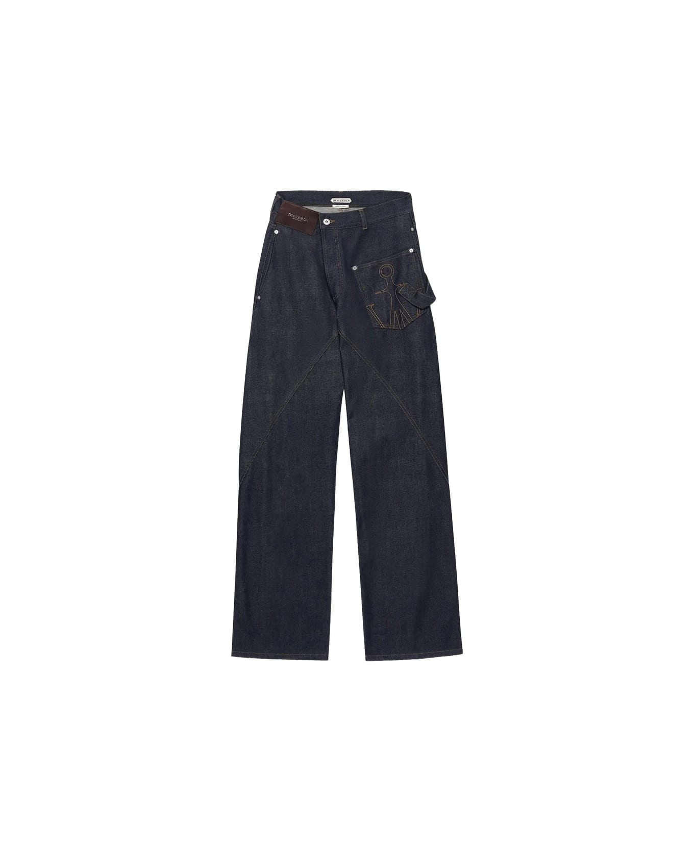 dark blue anchor embroidery belt loops side tool pocket logo patch