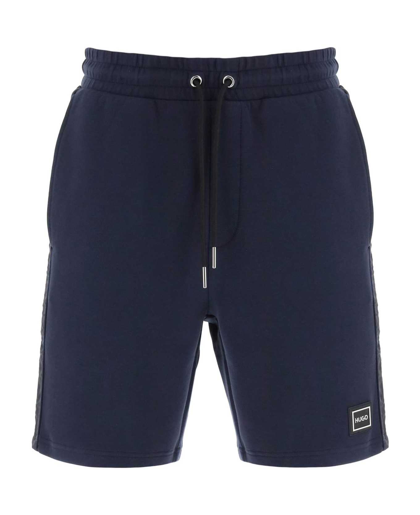 Bermuda shorts by HUGO made of cotton blend with framed logo patch applied to the bottom of the left leg and tone-on-tone side bands in technical fabric. Elasticated waistbad with drawstring, slash pockets and regular fit. The model is 187 cm tall and wears size M.