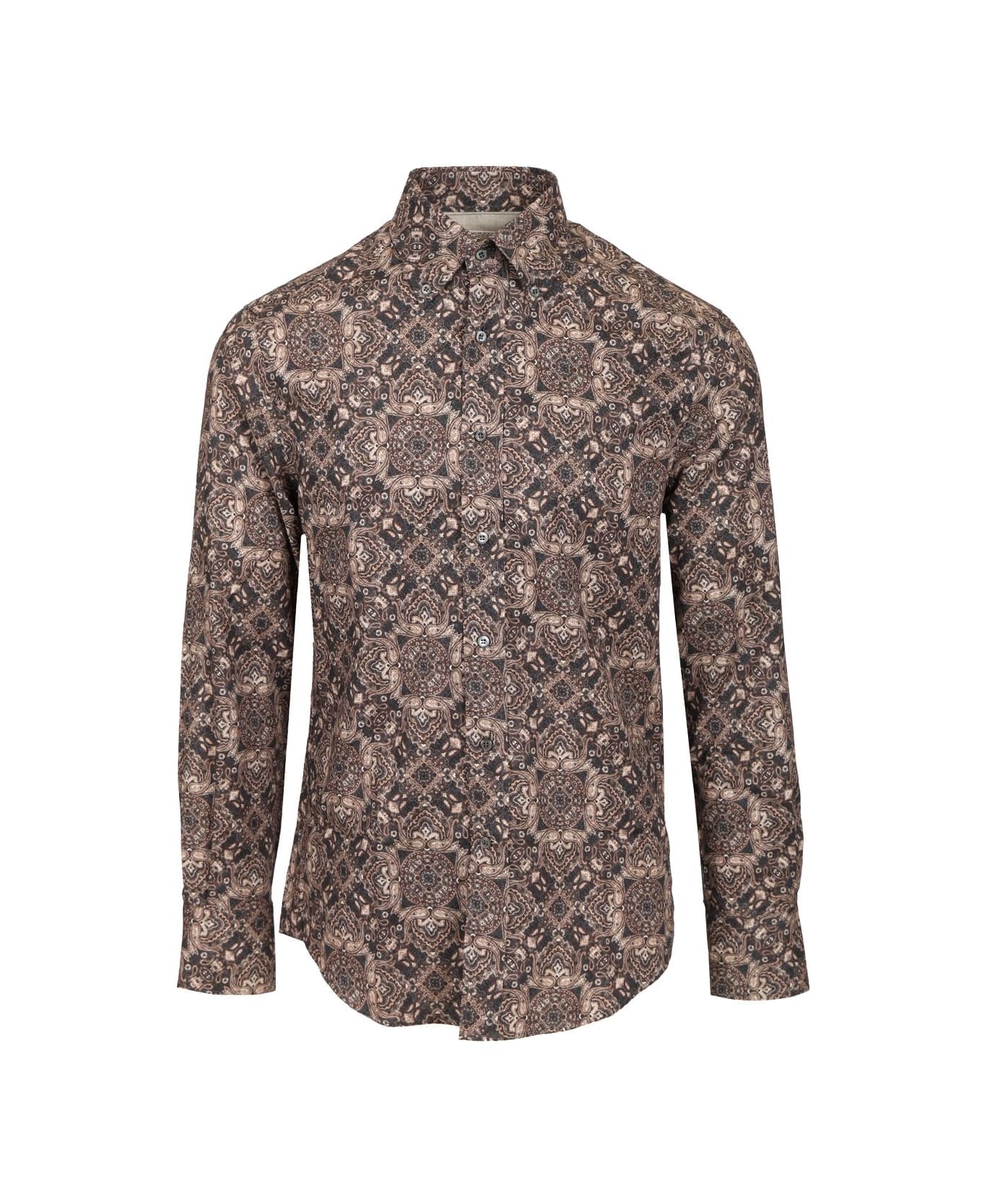 Long-sleeved cotton shirt with majolica print, button-down collar and mother-of-pearl buttons Composition: 100% cotton
