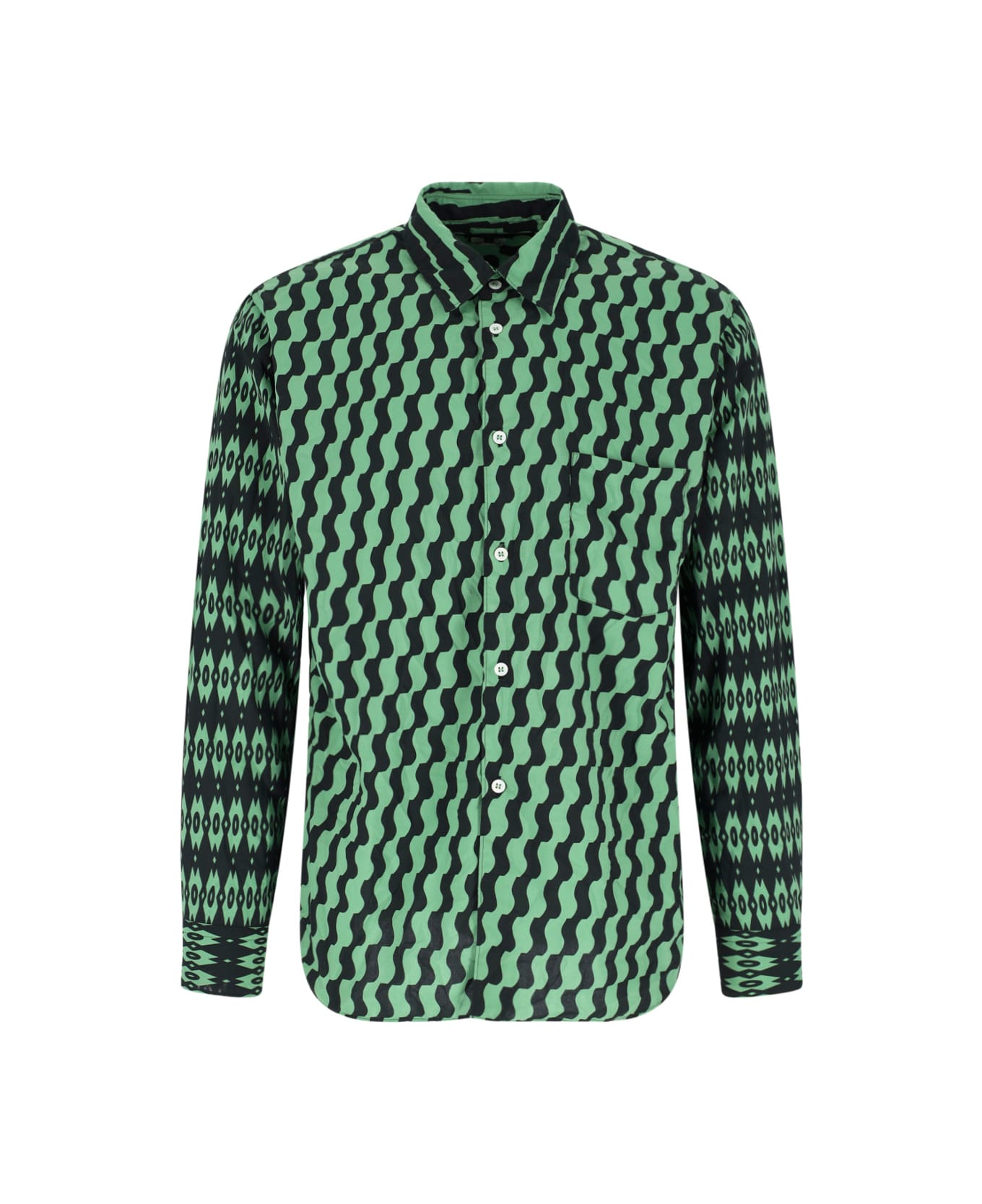 - Button shirt Comme Des Garçons in green fabric - all-over printed geometric pattern - classic collar - button closure - long sleeves