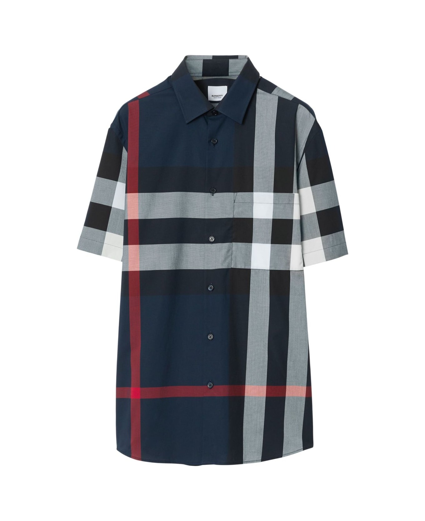 navy blue/multicolour cotton check pattern classic collar front button fastening short sleeves chest patch pocket curved hem Composition: 100% Cotton