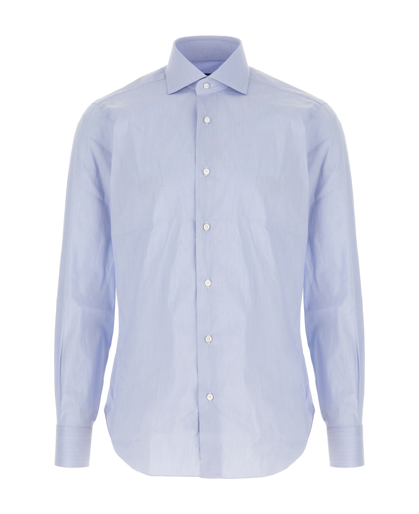 Shirt realized in stretch cotton blend poplin characterized by pointed collar. -Buttons closure at the front -Buttoned rounded cuffs -Rear yoke -Rounded hemline