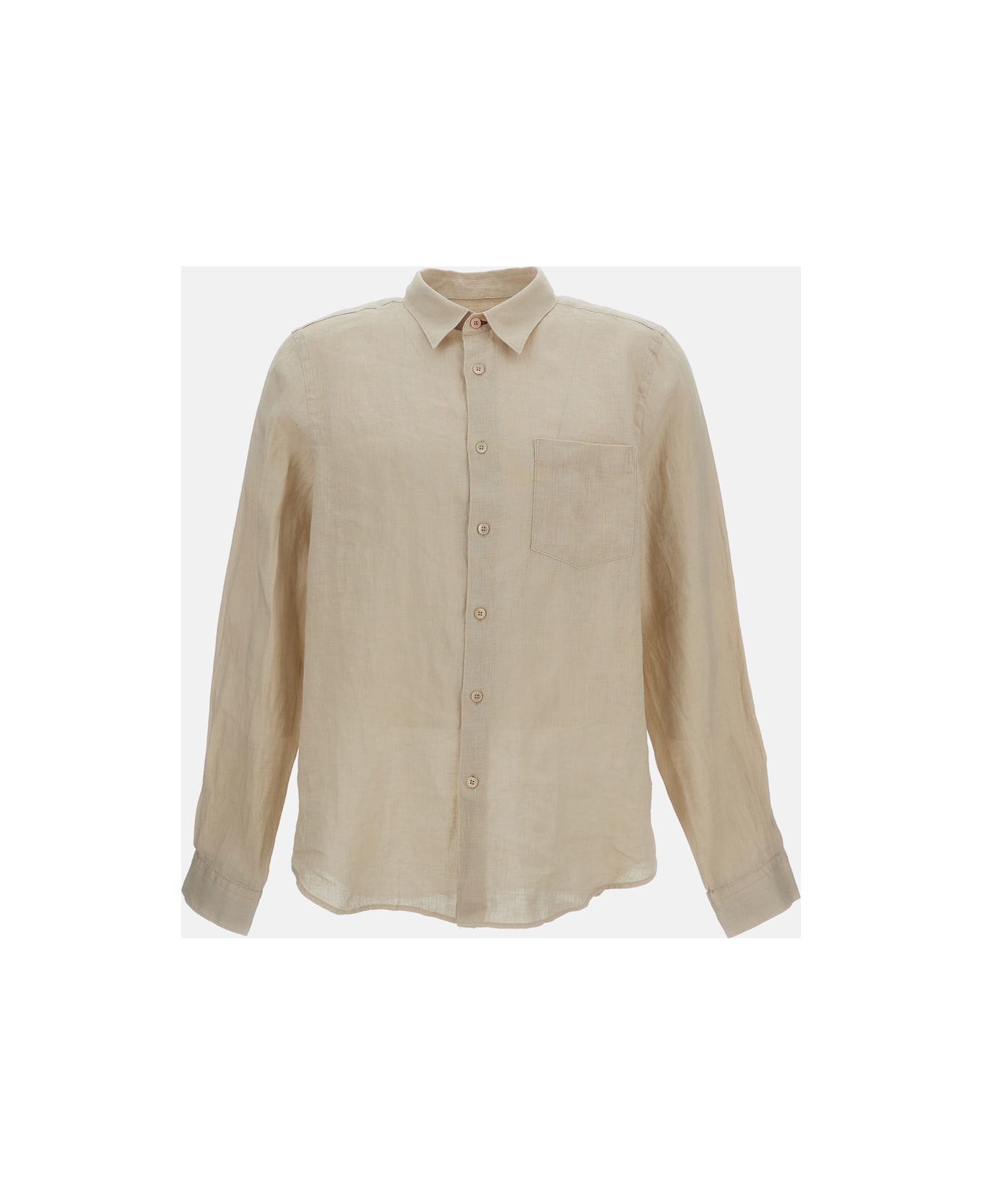 Linen shirt Relaxed fit Full front button closure Pointed collar Patch pocket on the front Buttoned cuffs Color: beige