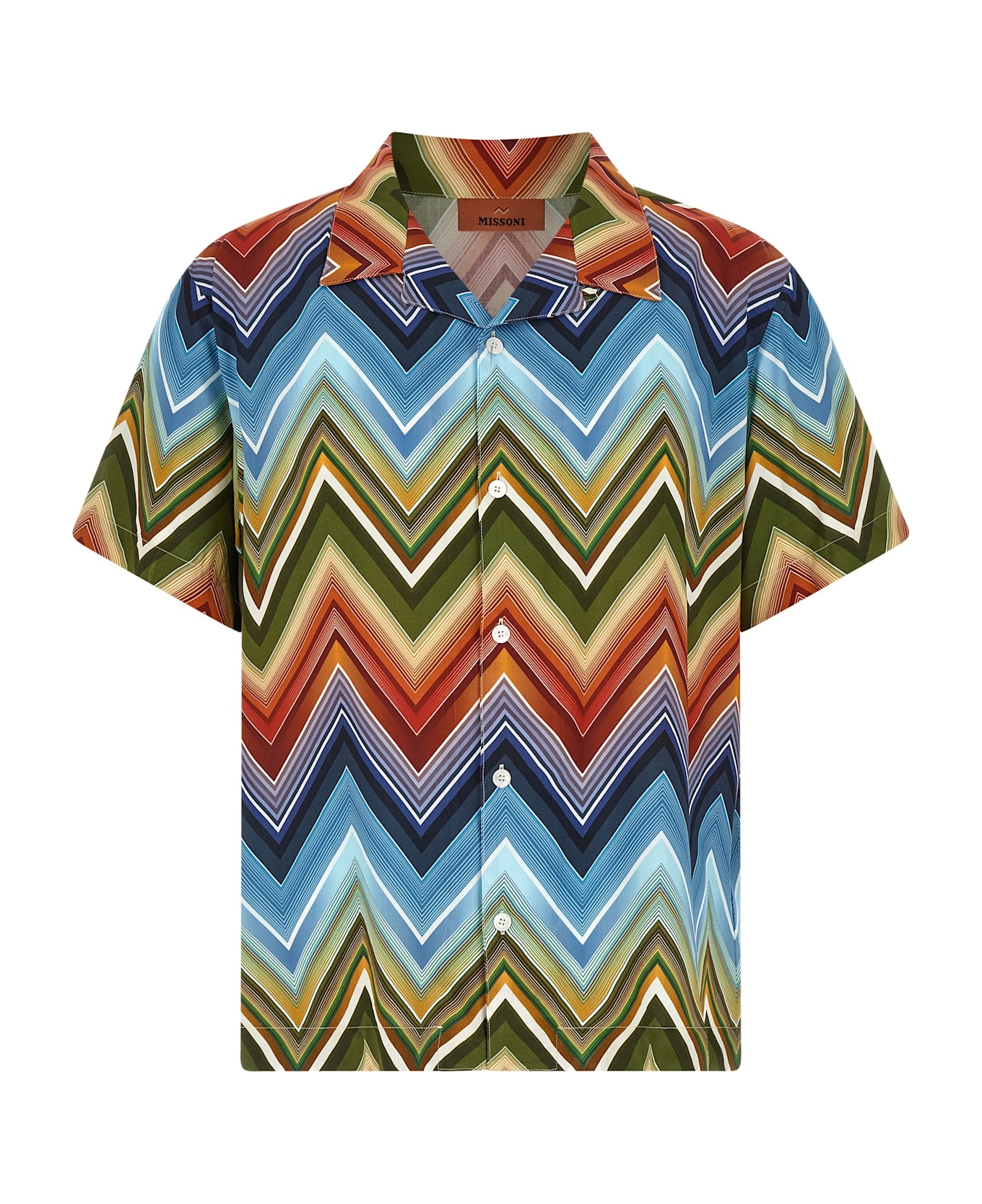 Viscose shirt with macro zigzag print, bowling alley style, front button closure, short sleeves with dropped shoulders.