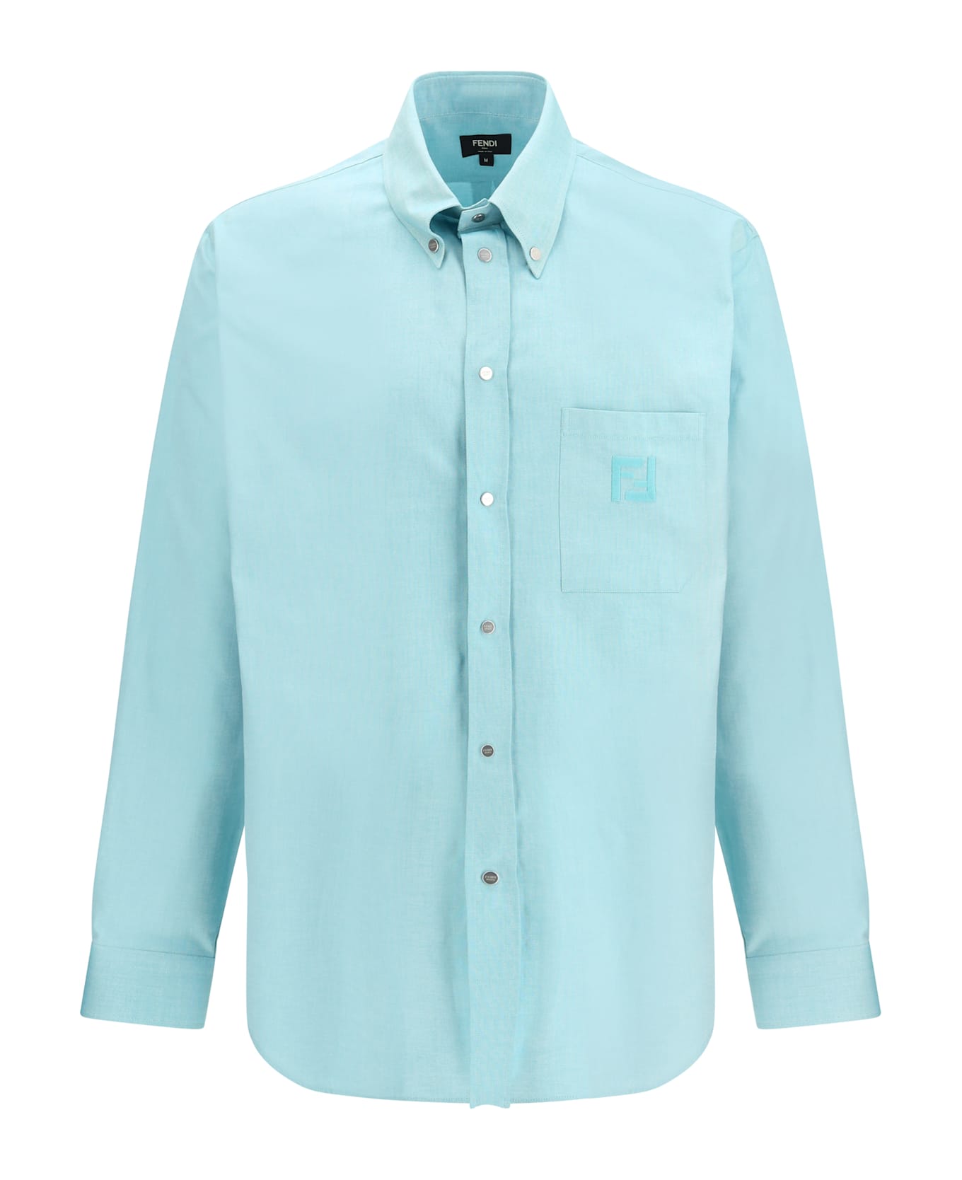 The oxford cotton shirt by fendi features a comfort fit with long sleeves, a button-down collar, and an applied chest pocket. the front closes with exposed buttons, while the iridescent burgundy oxford cotton adds a refined, luminous finish. the contrasting embroidered ff detail on the front pocket completes the piece with an iconic signature.