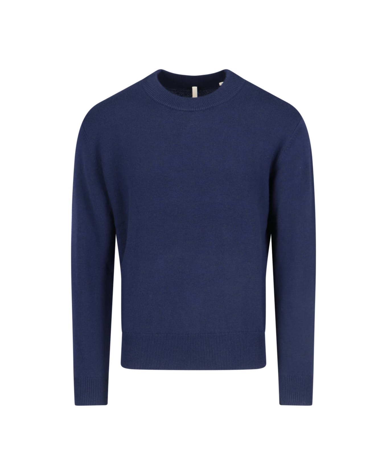 Classic sweater in merino wool, blue, navy shades, crew neck, ribbed trim, straight hem.