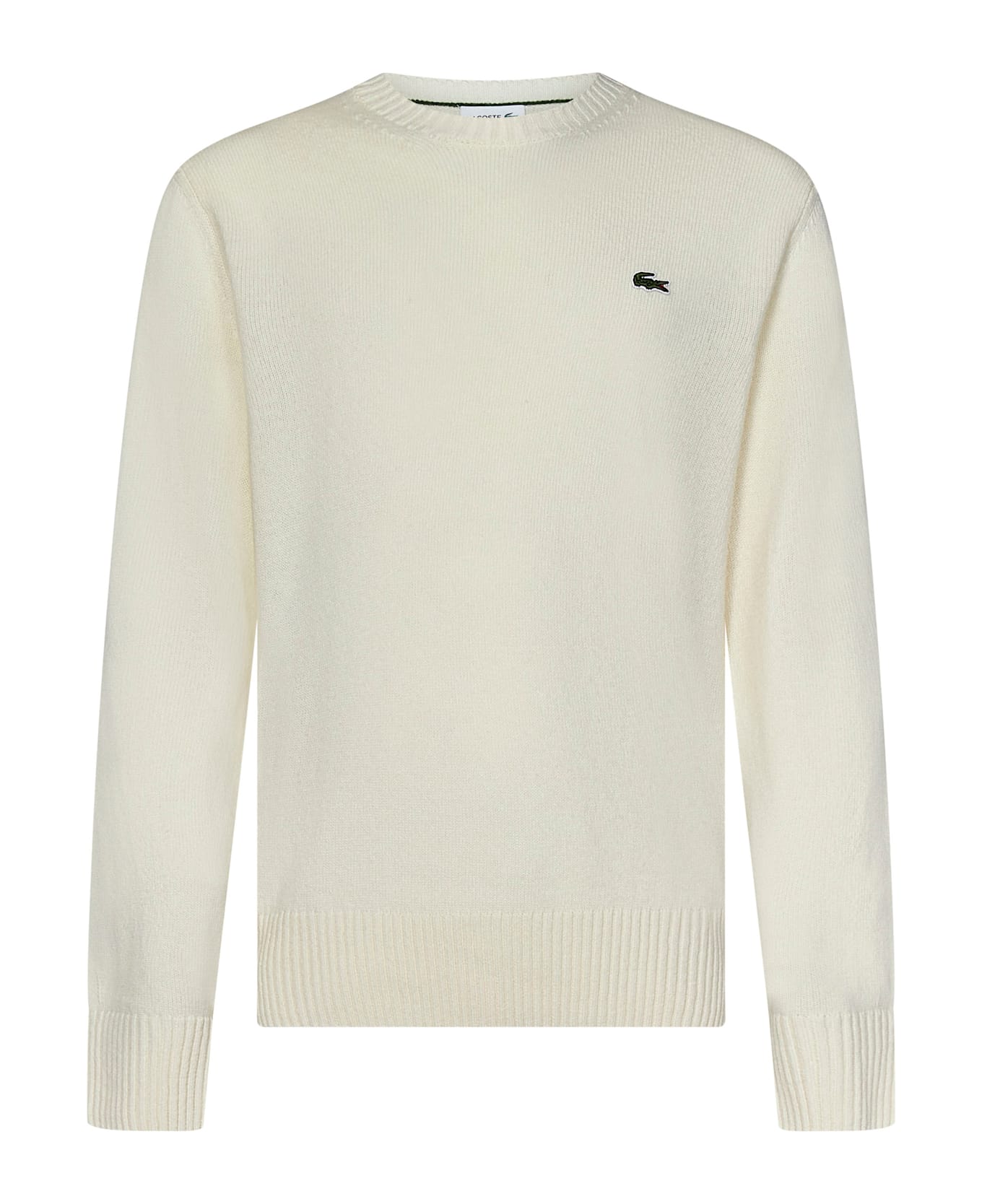 Composition: Ribbed Crewneck; Long Sleeves Crocodile Badge Embroidered At Chest Ribbed Cuffs And Bottom Band 7 Gauge Classic Fit White Color , 100% Wool Made In France