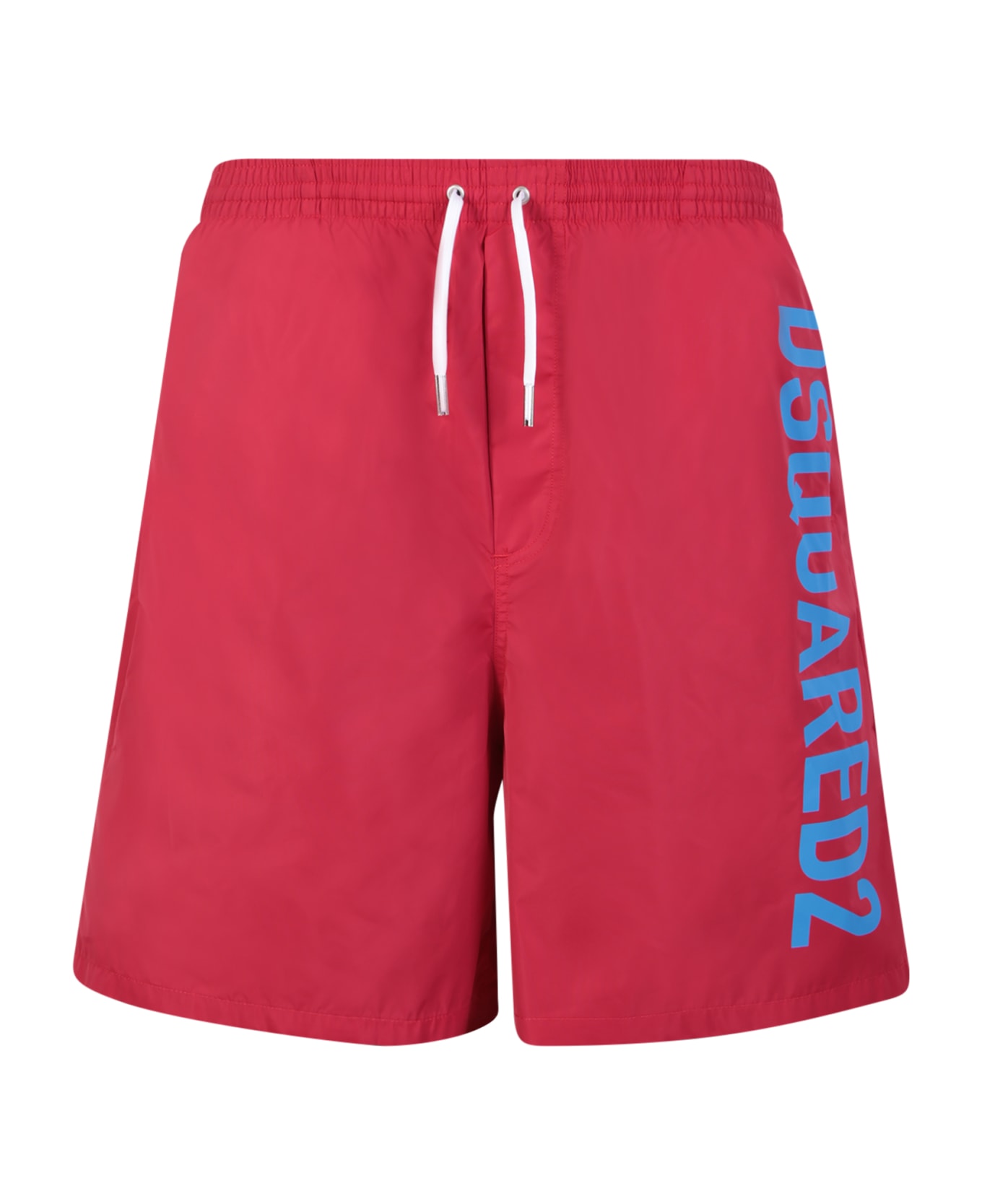 Mid rise. Drawstring elasticated waistband. Two side pockets. Logo print to the side. Contrasting logo. Loop to the rear. Slim fit. Thigh-high. Straight hem. Color: red