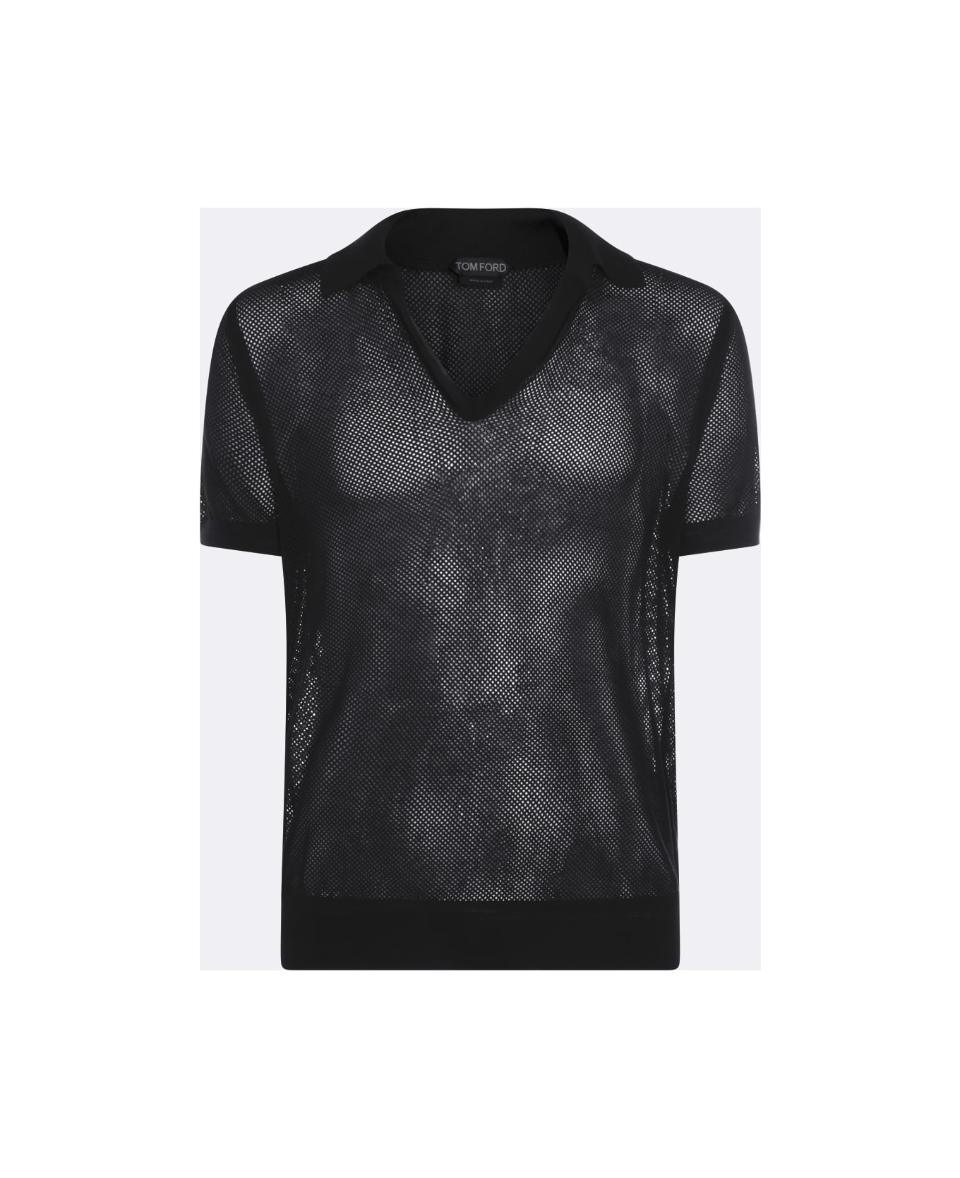 Black cotton and silk blend polo shirt from Tom Ford featuring short sleeves, V neck, mesh texture and regular fit. Composition: _, 50% Cotton, 50% Silk