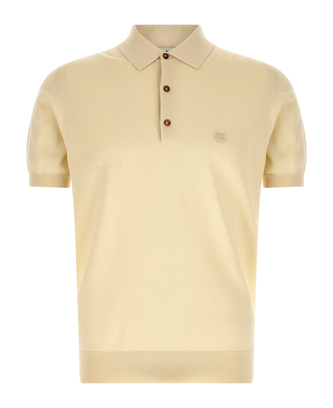 Cotton polo shirt, tone-on-tone 'Pegaso' embroidered logo on the front, collar and buttons, short sleeves with cuffs, and band on the hem. Composition: 100% cotton