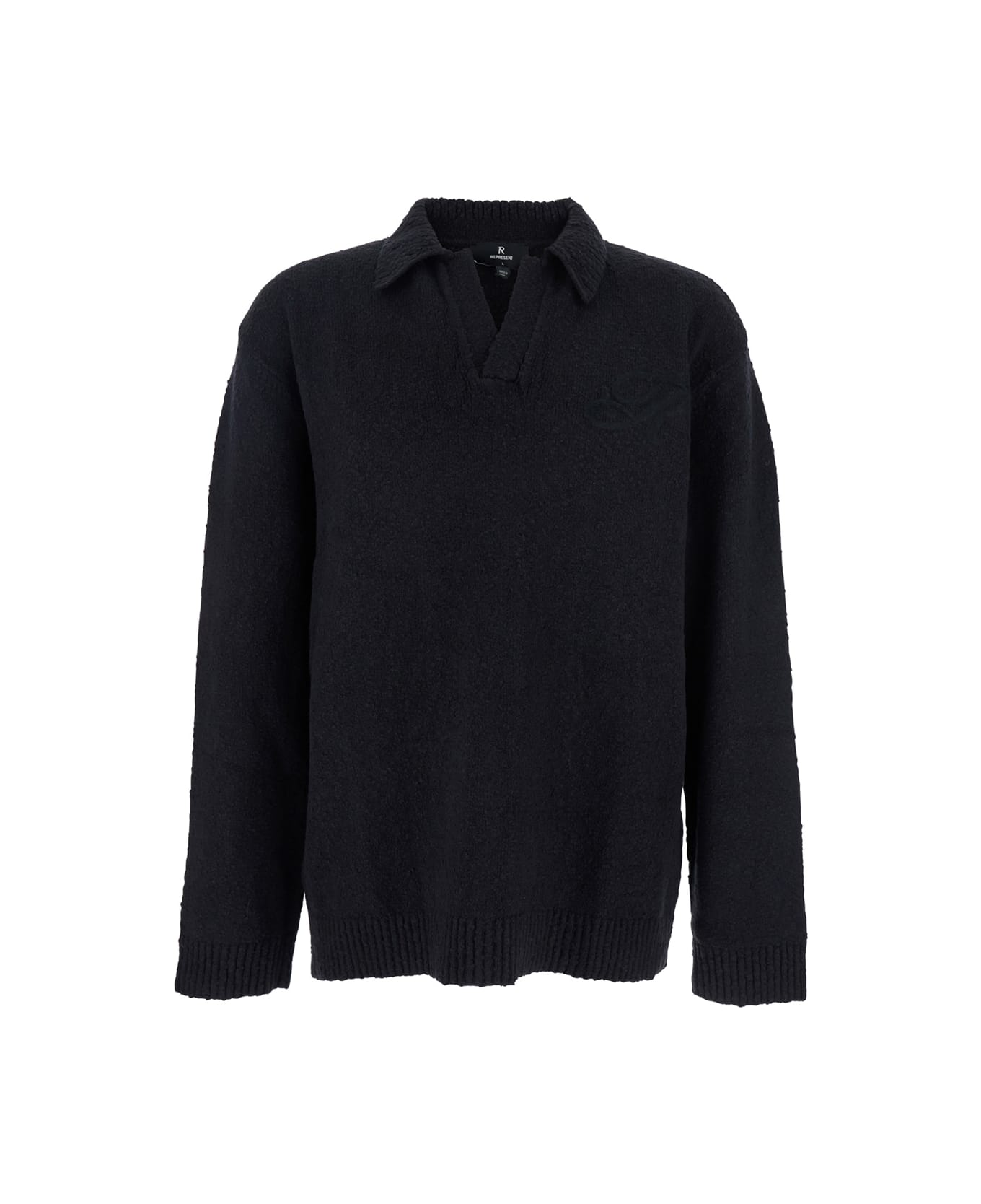 Black Long-sleeve Polo Shirt With Classic Collar And Ribbed Trims In Cotton Blend Stretch Man