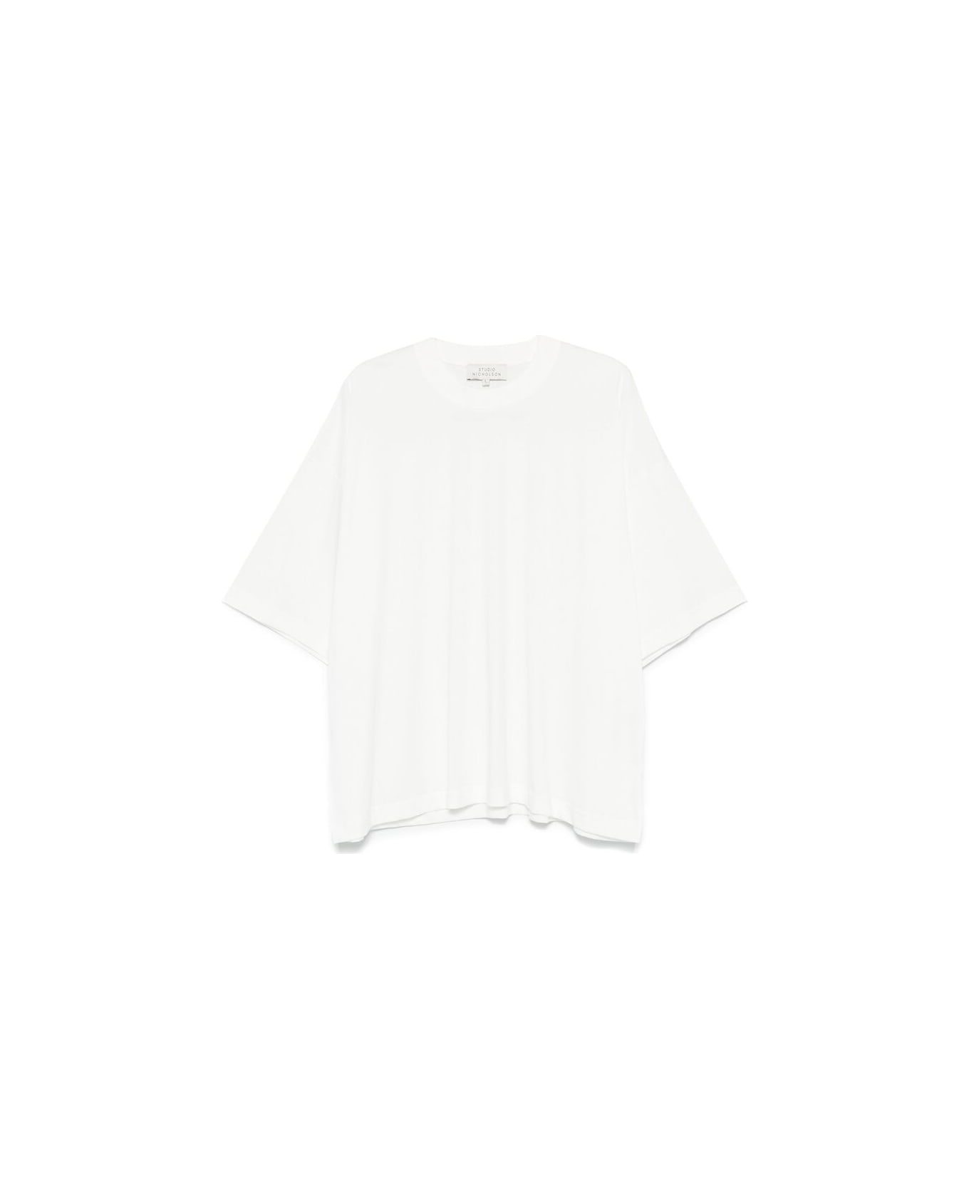 white cotton lightweight jersey crew neck drop shoulder short sleeves straight hem