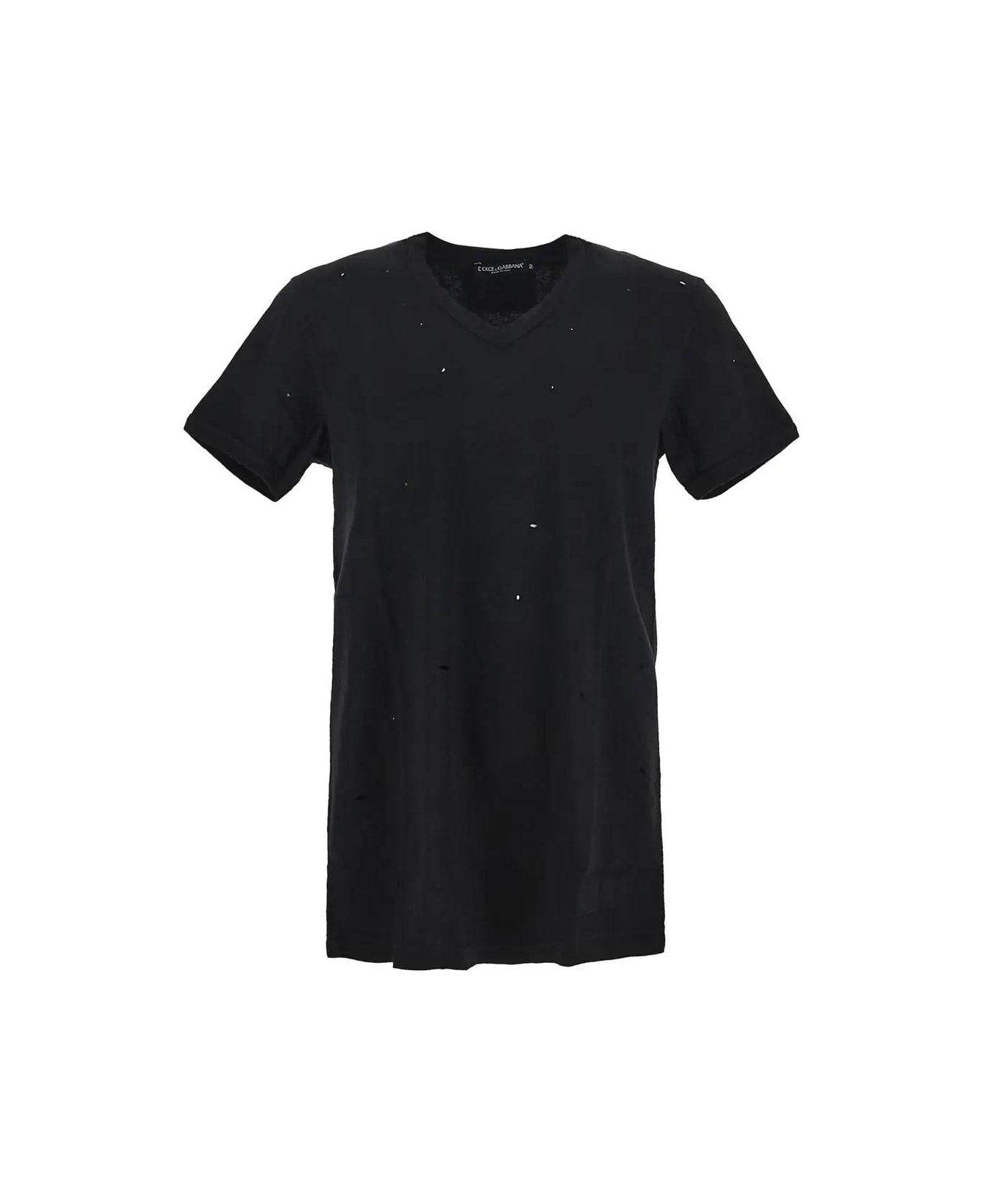 Dolce & Gabbana t-shirt in black cotton with V-neck, ribbed detailing throughout, elastic ribbed neck and cuffs, short sleeves, logo patch at back and regular fit. Composition: 100% cotton