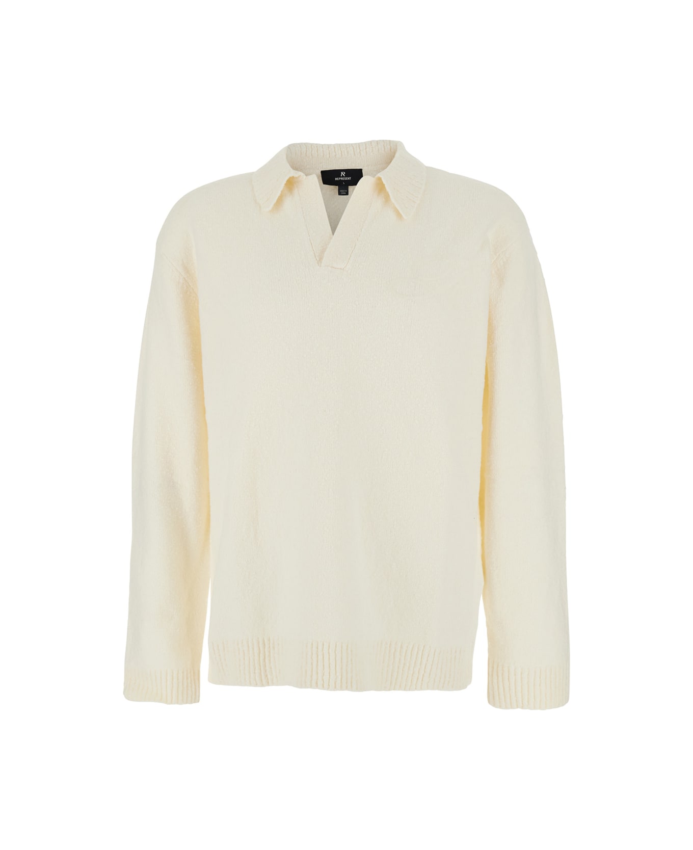 White Long-sleeve Polo Shirt With Classic Collar And Ribbed Trims In Cotton Blend Stretch Man