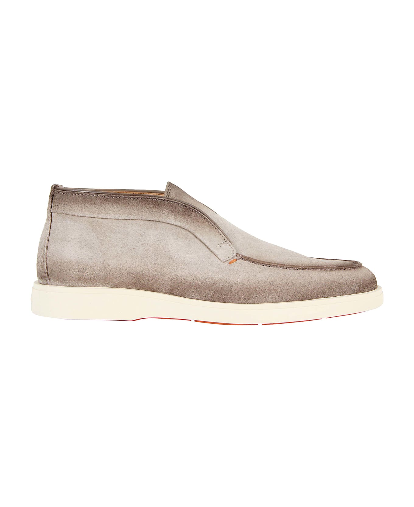 Shoe - Santoni - Slip-on digitis model - Brown color - Round toe - Contrast stitching - Suede upper - Cautchon sole