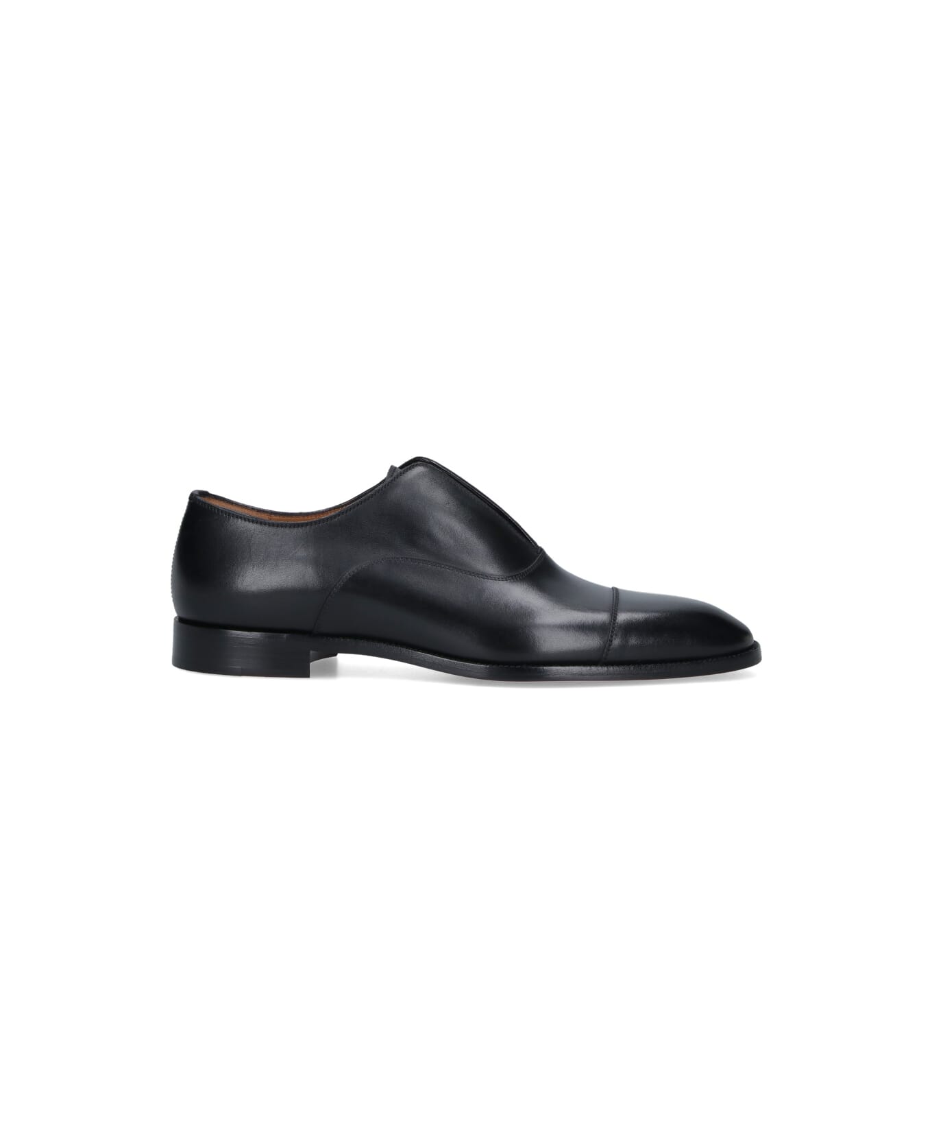 Christian Louboutin 'Alpha male II' scrape derby shoes in black calf leather, pointed toe, concealed elastic strap closure, square heel, slip-on fit, leather and rubber sole. Composition: 100% Calf Leather