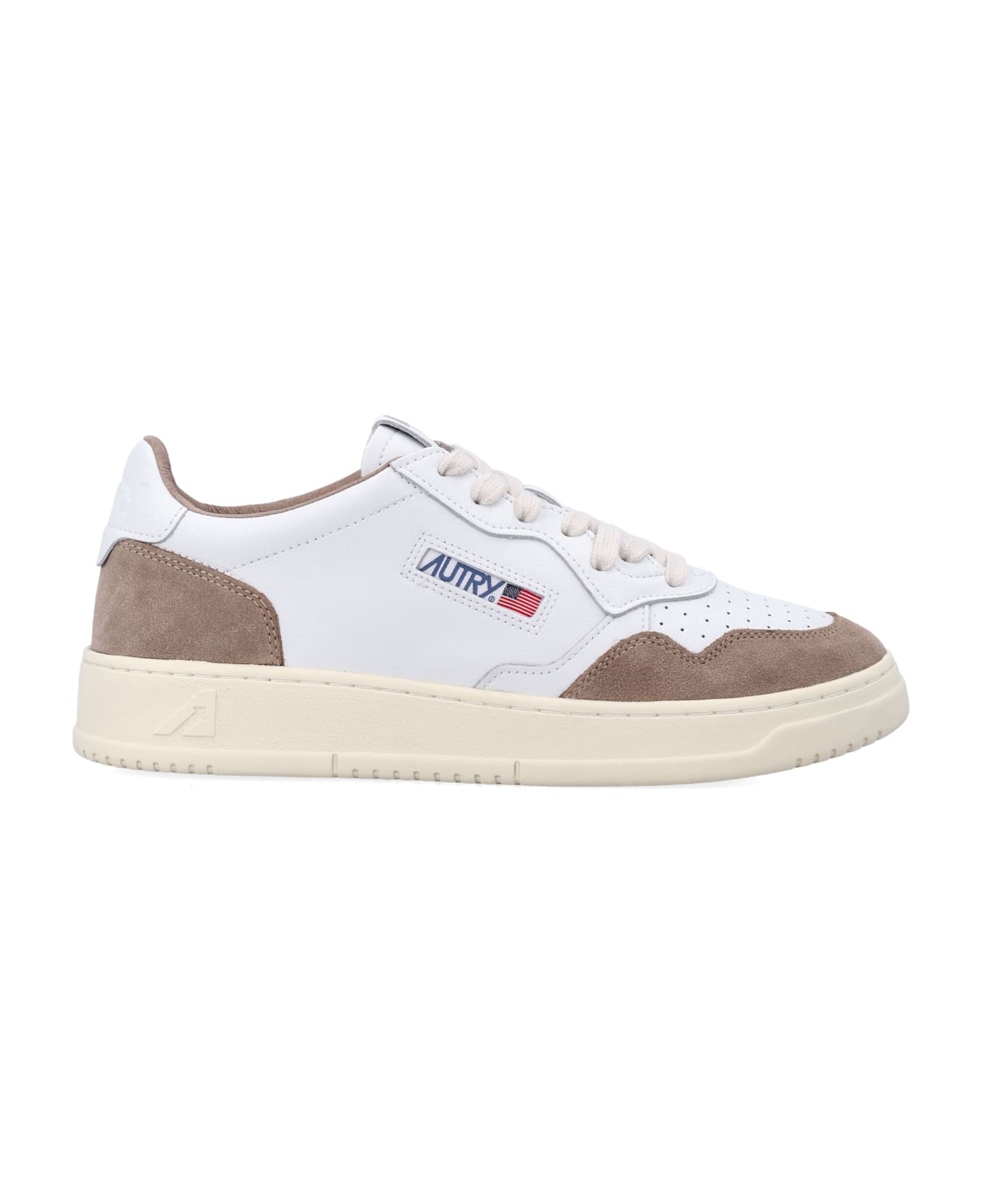 Autry Medalist Low White Leather And Brown Suede Sneakers