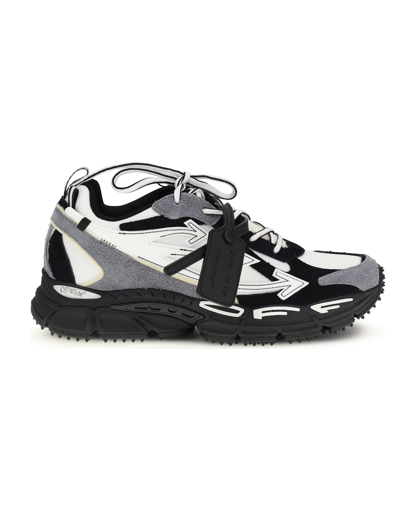 The be right back sneakers by off-white are a perfect blend of streetwear style and functionality. the distinctive arrow motifs on the sides add an iconic touch, while the strap makes the design even more recognizable. the tongue and heel tab are embellished with the brand's logo, giving them a unique look. the lightweight cushioned midsole ensures comfort during everyday wear, while the grooved rubber outsole provides a secure grip. the tongue and heel tabs allow for quick and easy fitting, making these sneakers not only stylish but also practical.