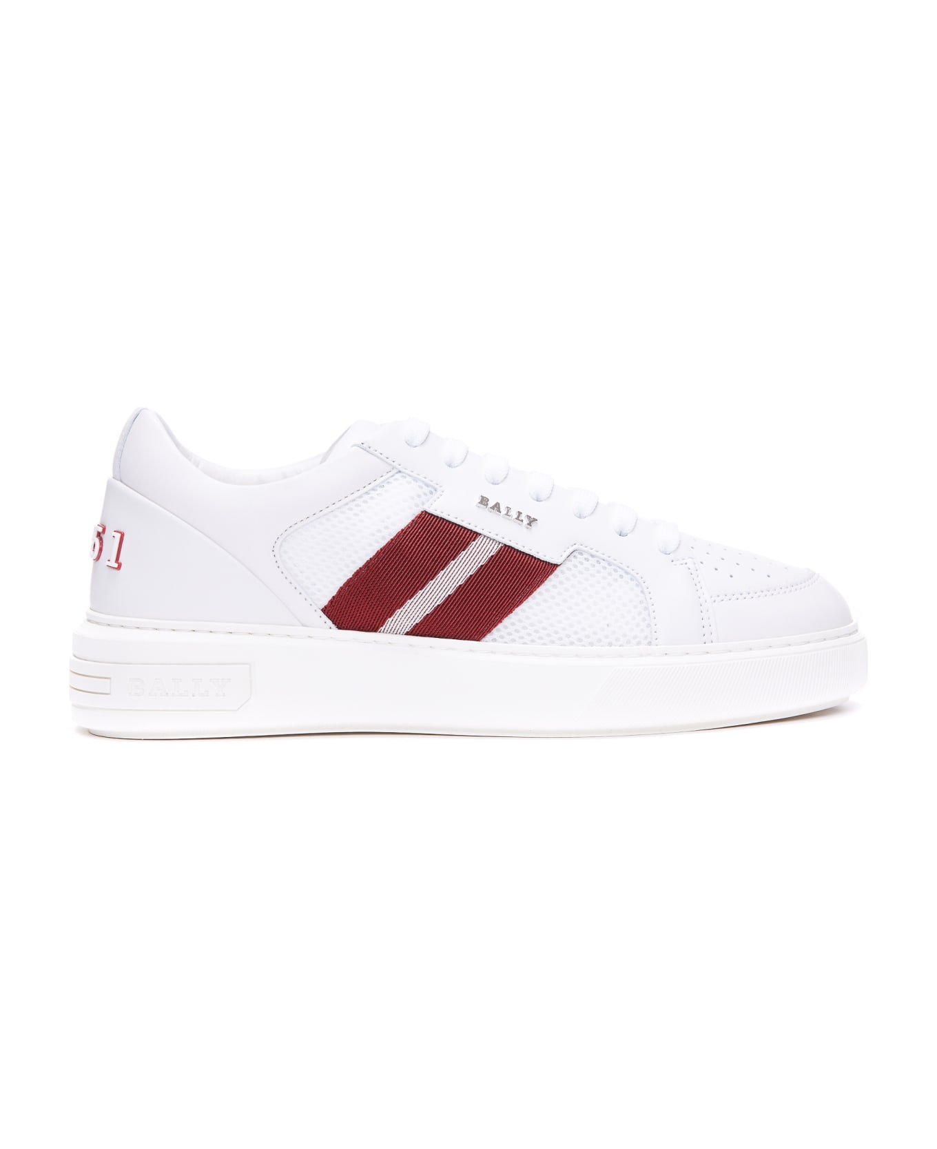 Bally white Melys sneakers, leather and fabric upper, lace up closure, round toe, lateral logo