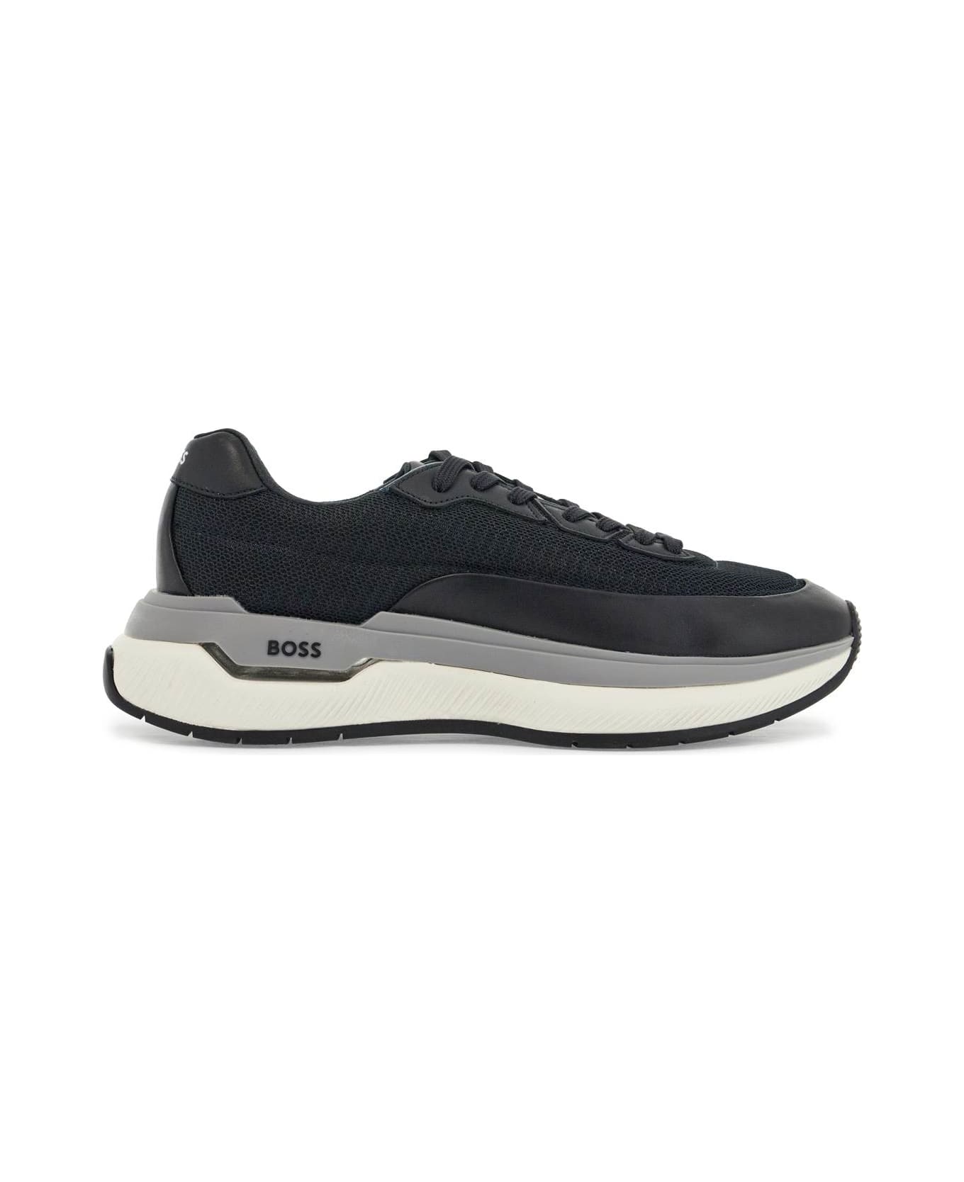 The BOSS VOID_RUNN_LTNY sneakers combine elegance and comfort. Made of breathable fabric and dark blue synthetic leather with cushioning sole. Modern design for urban style.