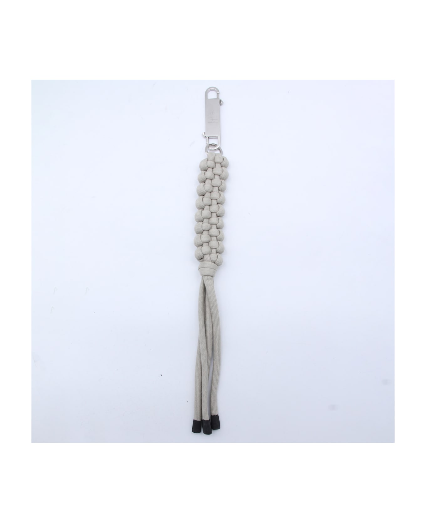 White key ring from Moncler + Rick Owens featuring snap hook and knitted rope.