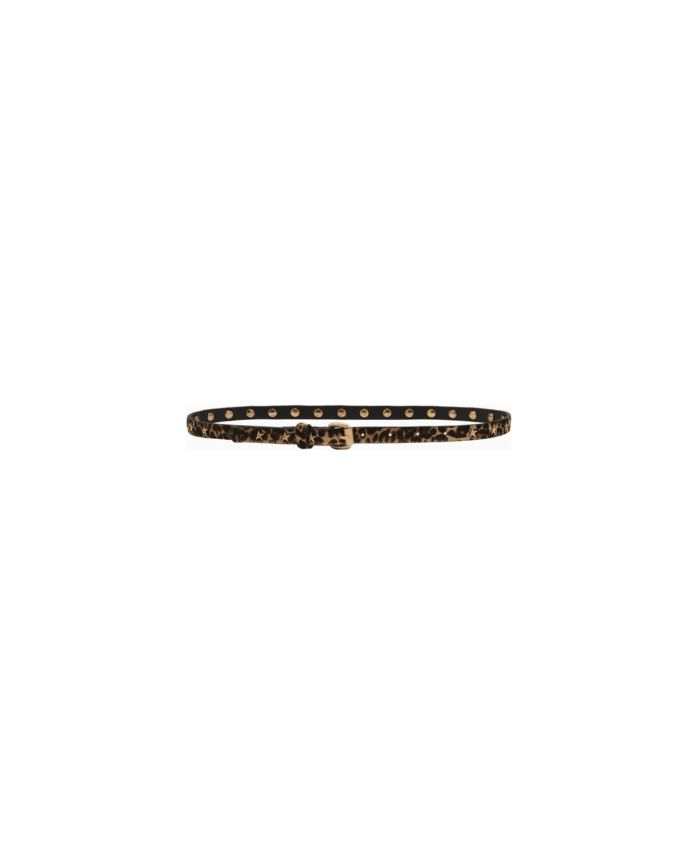 made in italy molly pony thin belt in animalier print pony skin with 1/2 star flat stud decorations. aged-effect brass buckle. size: 75 cm. composition: 100% leather. protective case in canvas with logo included.