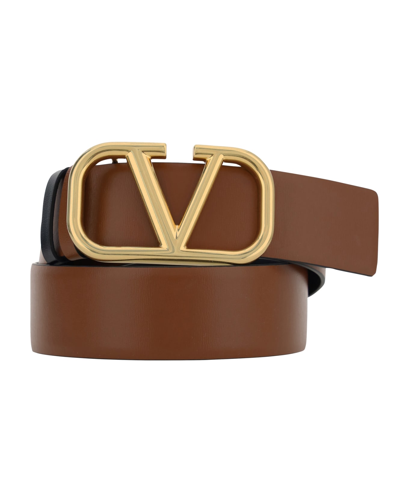 Calfskin reversible belt by valentino garavani, smooth leather design, metal buckle with iconic antiqued brass-plated vlogo on front, double-face pattern. thickness: 4 cm. Composition: 100% % Calf Leather Bos Taurus