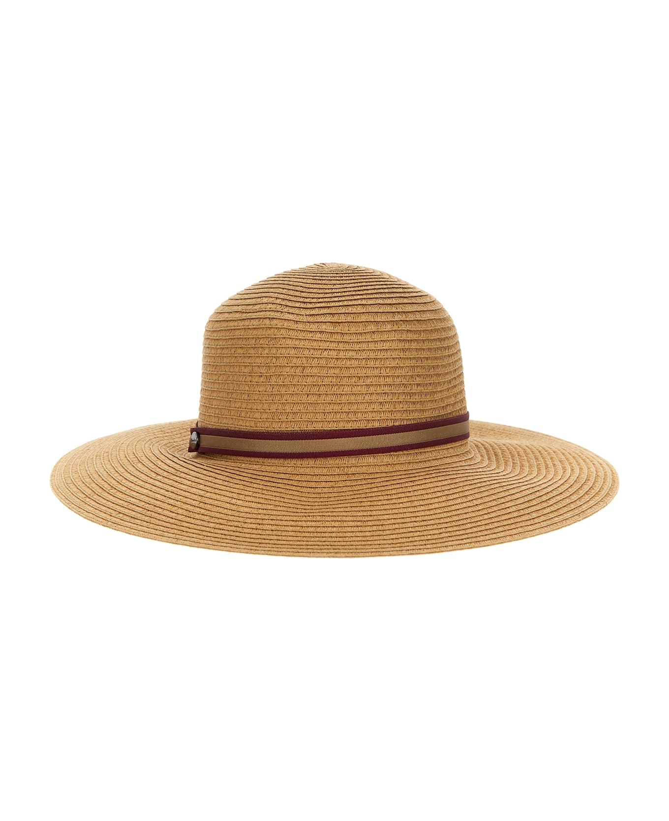 Giselle hat made of hand-woven paper, wide-brimmed style, two-tone grosgrain band with a logo snap button, foldable. Each piece is one-of-a-kind. Handcrafted product any imperfections are to be considered unique characteristics. Composition: 100% paper
