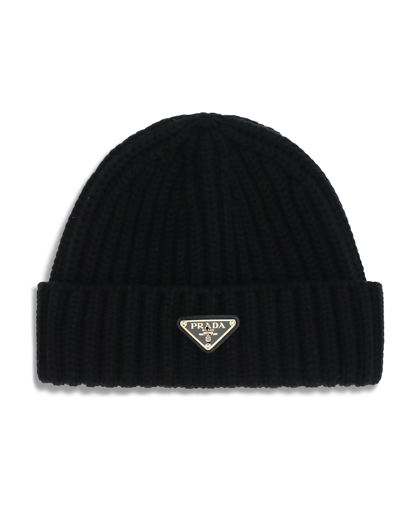 Prada's virgin wool beanie hat is an essential accessory with refined style. made with ribbed workmanship, it features a fitted and comfortable design, enriched by the iconic triangular logo plaque on the front, a distinctive detail of the brand's aesthetic. Composition: 100% % Fleece Wool