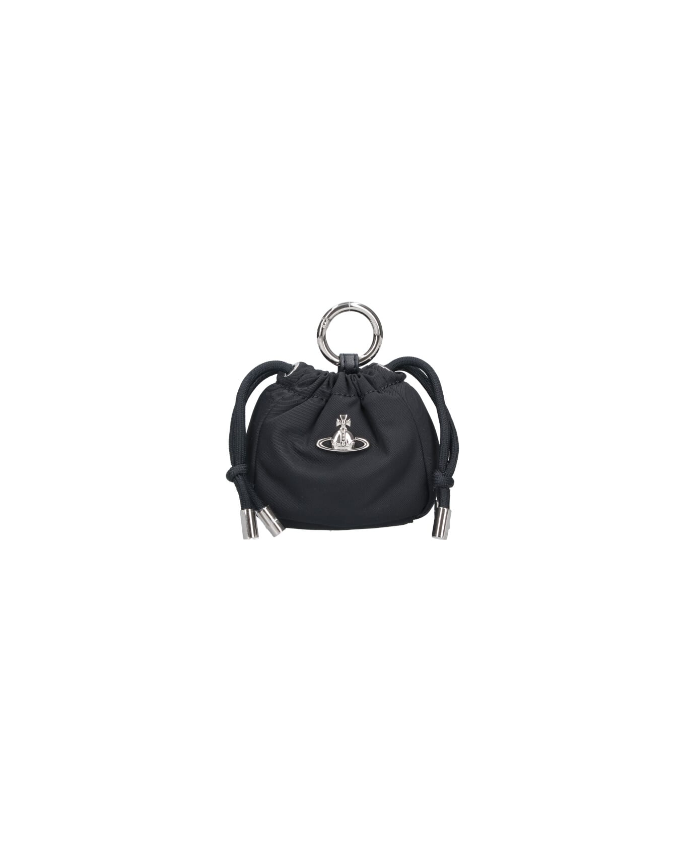- Keychain pouch "Orb" Vivienne Westwood in black fabric - adjustable drawstring - "Orb" metal logo on the front - silver metal keyring