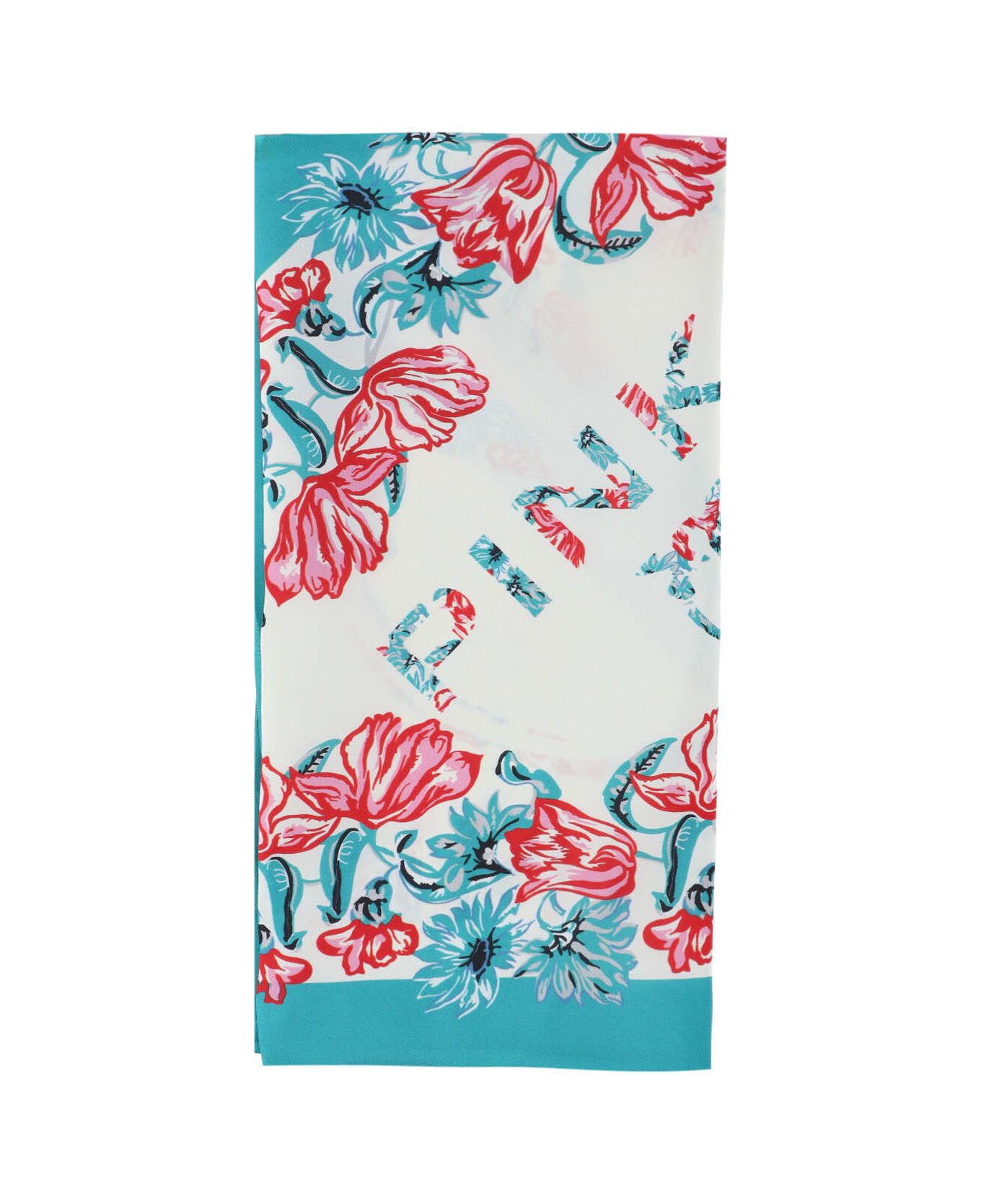 - Logo scarf Pinko in blue viscose and silk - triangular design - all-over floral pattern - Maxi contrasting logo print