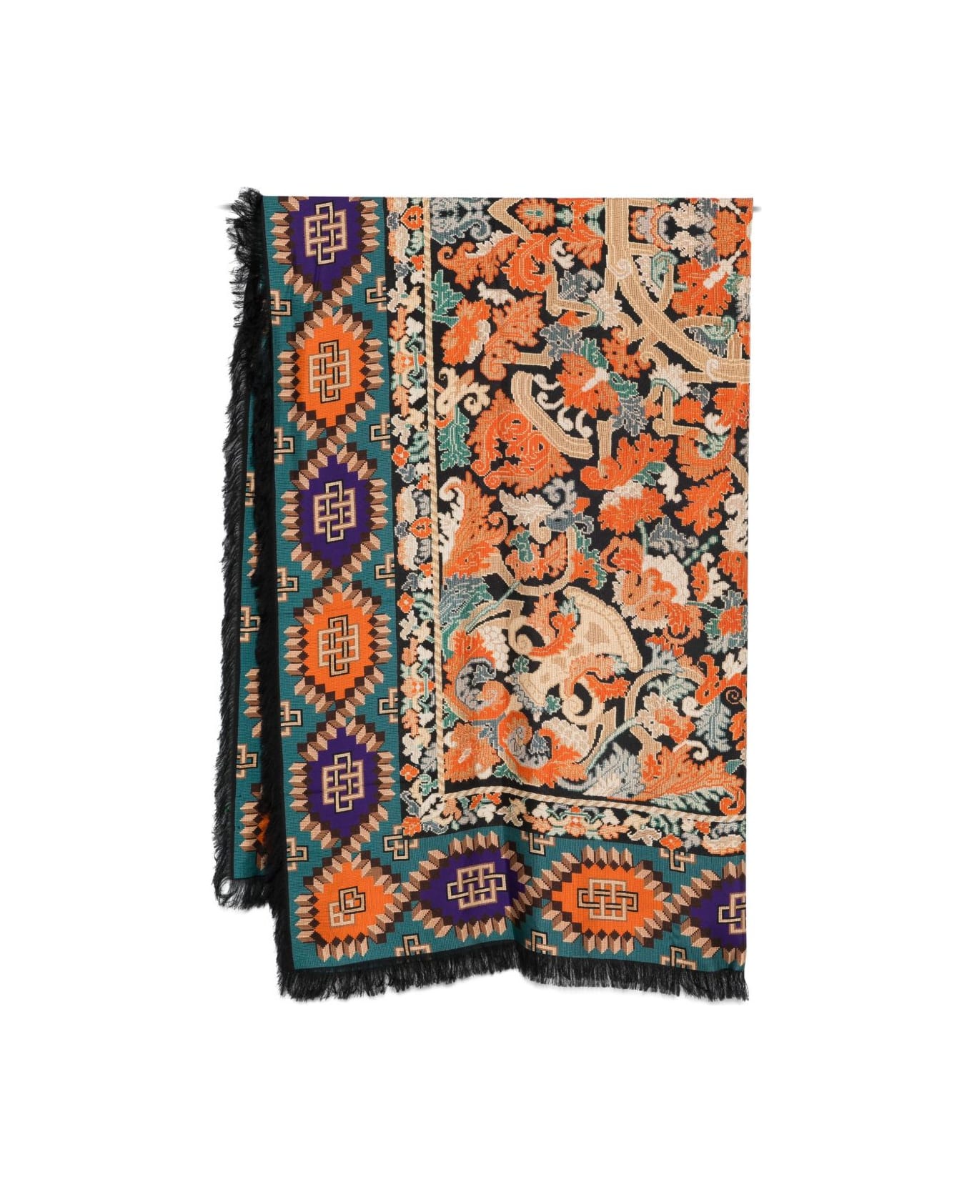 multicolour frayed edge graphic print silk