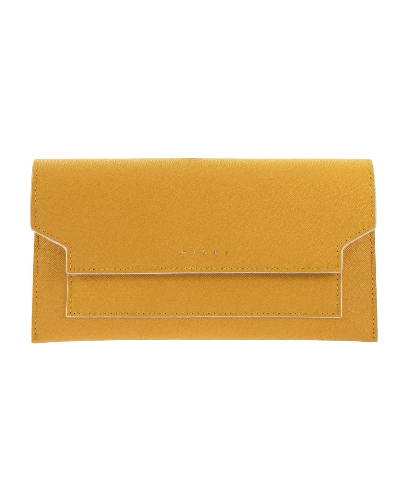 Bellows Wallet in saffiano leather; - 3 compartments - One of which is zipped - Snap-secured - Length-adjustable and removable shoulder strap - Bi-coloured motif - Gold-tone embossed Marni logo DESIGNER ID: PFMOT08U07 LV520 Z390W Composition: Outer: 100% Leather Lining: 100% Cotton Details: Metal