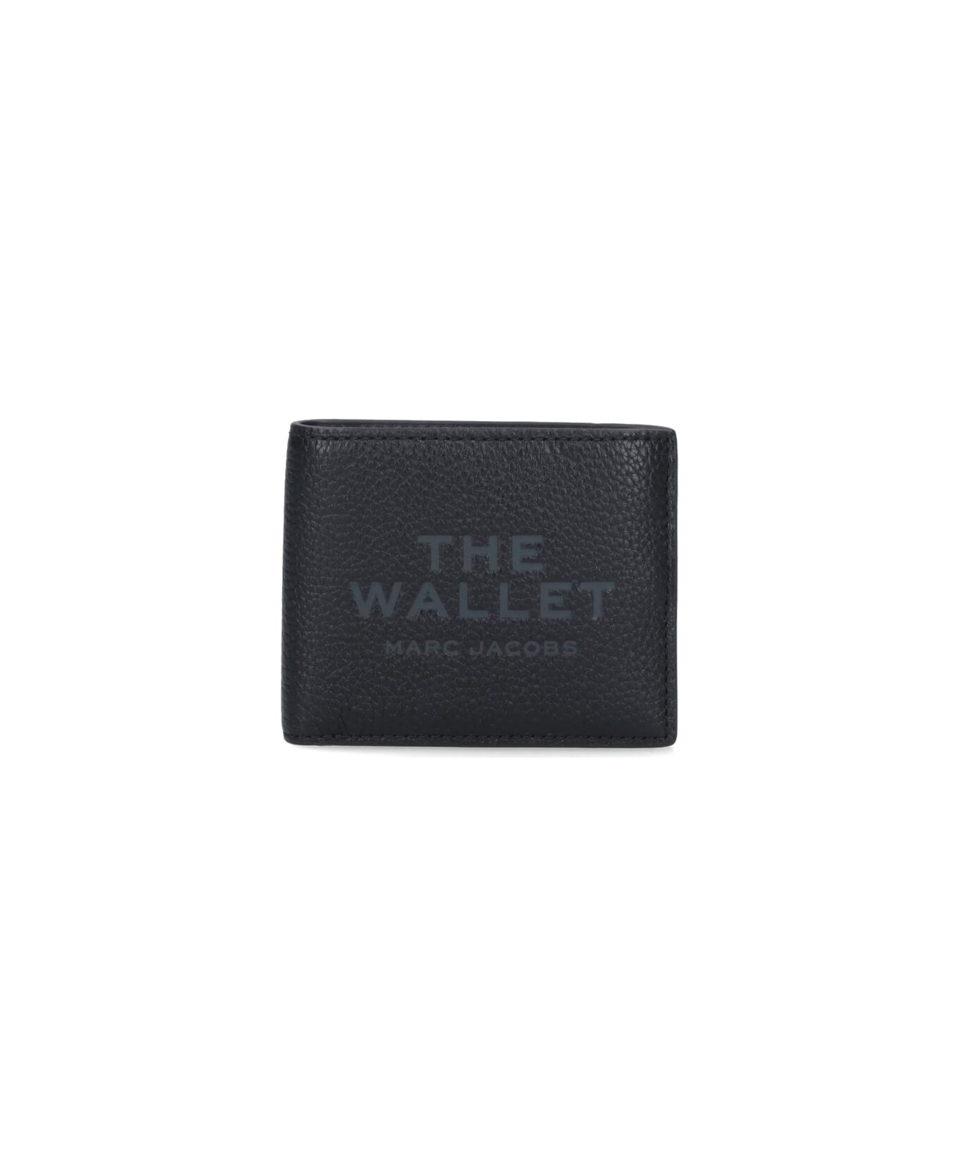 Marc Jacobs 'The Leather' bi-fold wallet in black hammered leather with embossed logo on the front, back logo patch, six inner card slots, two inner slip pockets, inner bill compartment.