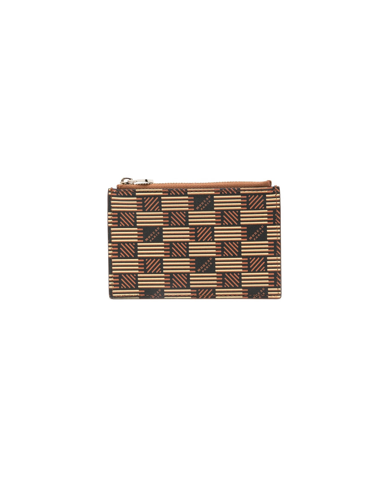brown/beige/black calf leather panelled design logo stamp to the front card slots main compartment top zip fastening