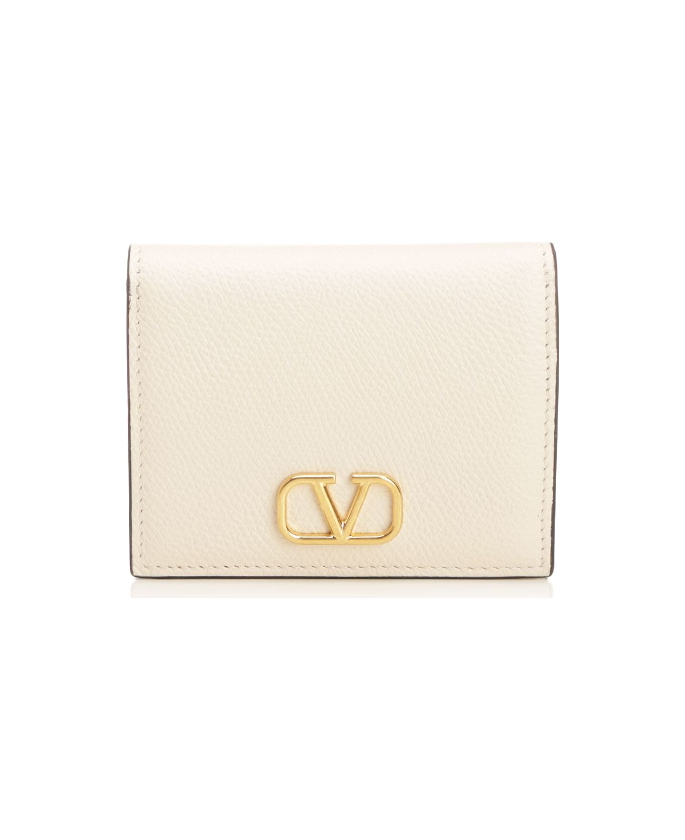 "V Logo" wallet in ivory leather from Valentino Garavani, with 4 card slots, one compartment for banknotes, one coin pocket with flap.
