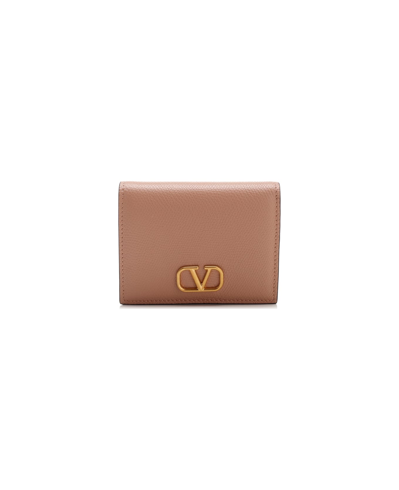"VLogo Signature" compact wallet from Valentino Garavani in powder pink garnet calfskin with snap button closure, four card slots, one flat pocket, flap coin pocket and one cash pocket. Composition: 100% calf leather