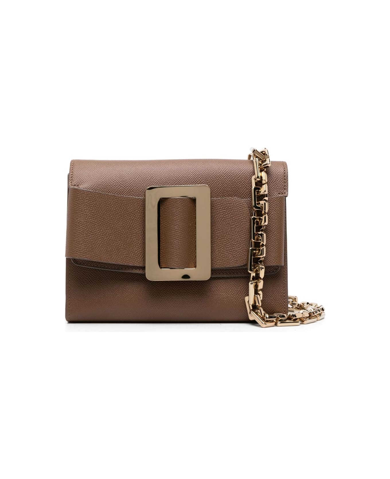 buckle-detail leather shoulder bag from BOYY featuring coffee brown, calf leather, grained texture, suede lining, accordion design, gold-tone hardware, decorative buckle detail, detachable chain-link shoulder strap, foldover top with magnetic fastening, partitioned compartment and internal zip-fastening pocket.