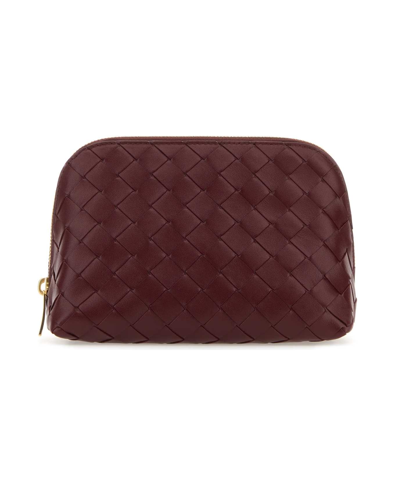 Burgundy Leather Half Moon Beauty Case from Bottega Veneta
