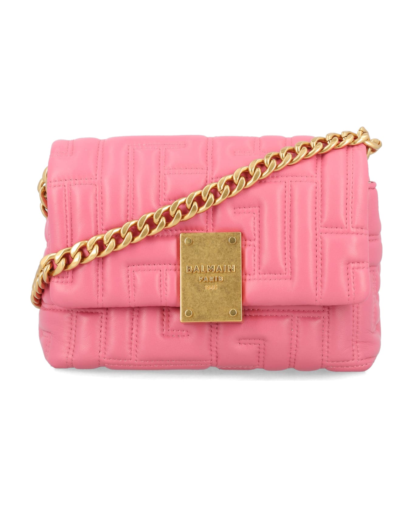 1945 Soft Mini Bag In Quilted Leather By Balmain. Featuring: Quilted Monogram Motif Flap With Magnetic Clasp And Embossed "balmain Paris 1945" Plate Chain Handle Intertwined With Smooth Tonal Leather Card Pocket And Embossed Logo On The Inside Golden Hardware Height: 13,5 Cm Width: 19 Cm Depth: 6,5 Cm