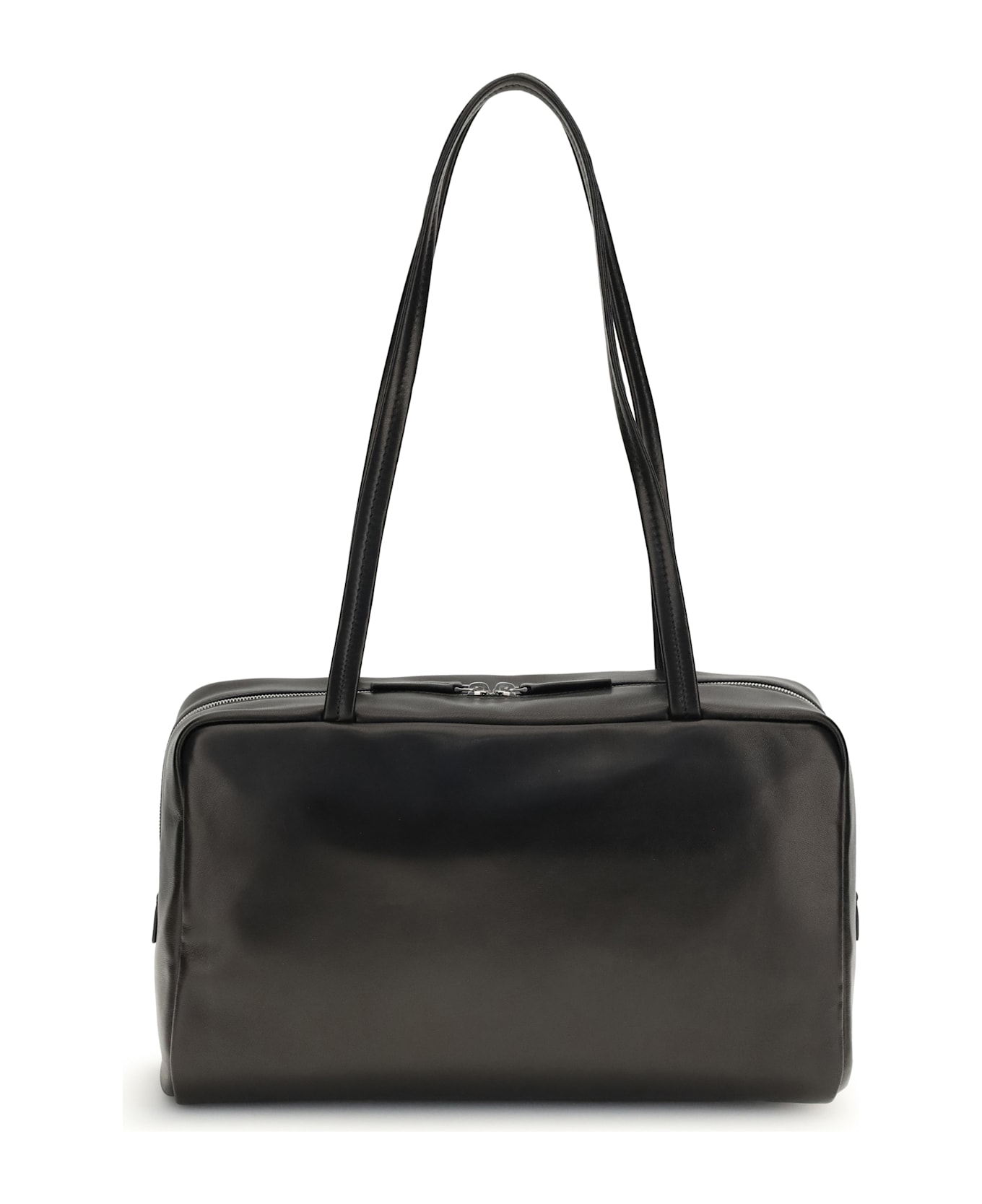 The astra bowling leather shoulder bag by the row reflects the brand's essential sophistication with a clean, functional design. crafted from smooth leather, it features a zip-around closure at the top and two short handles for elegant carry by hand or on the arm. the discreet detail of the iconic press-on monogram on the side panel adds a distinctive touch. a single compartment interior completes the model, designed for those who love understated, impeccable style.