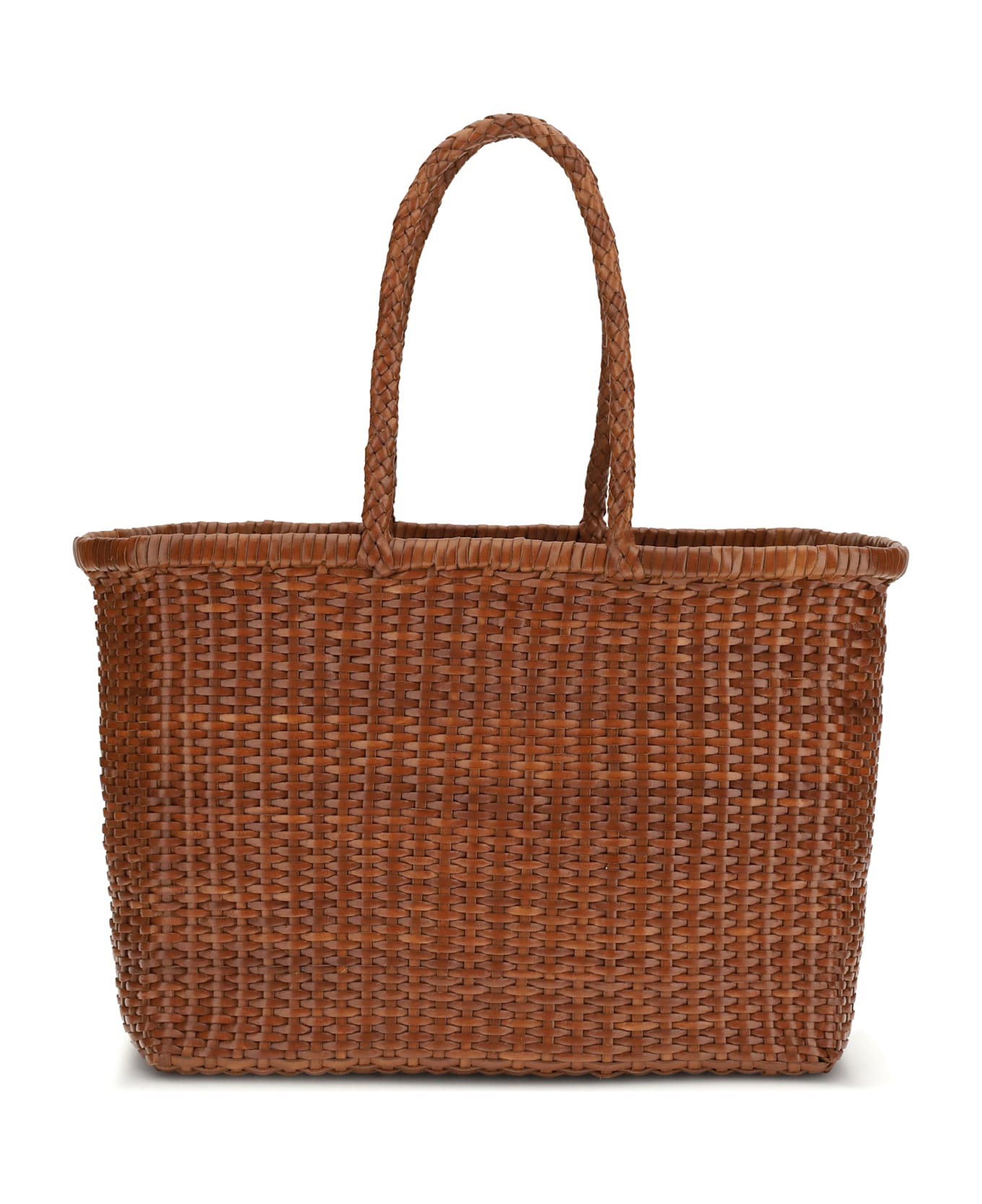 The big weave tote bag by dragon diffusion is a refined and practical accessory made of woven buffalo calfskin that creates vertical lines, characterizing the weave big model. this square basket design features a wide entrance without closures, enhancing its convenience of use. fully unlined, the bag is embellished with a st. christopher medal hand-stitched on the inside, a symbolic detail of protection and craftsmanship. a versatile model, perfect for any occasion, it combines elegance and functionality.