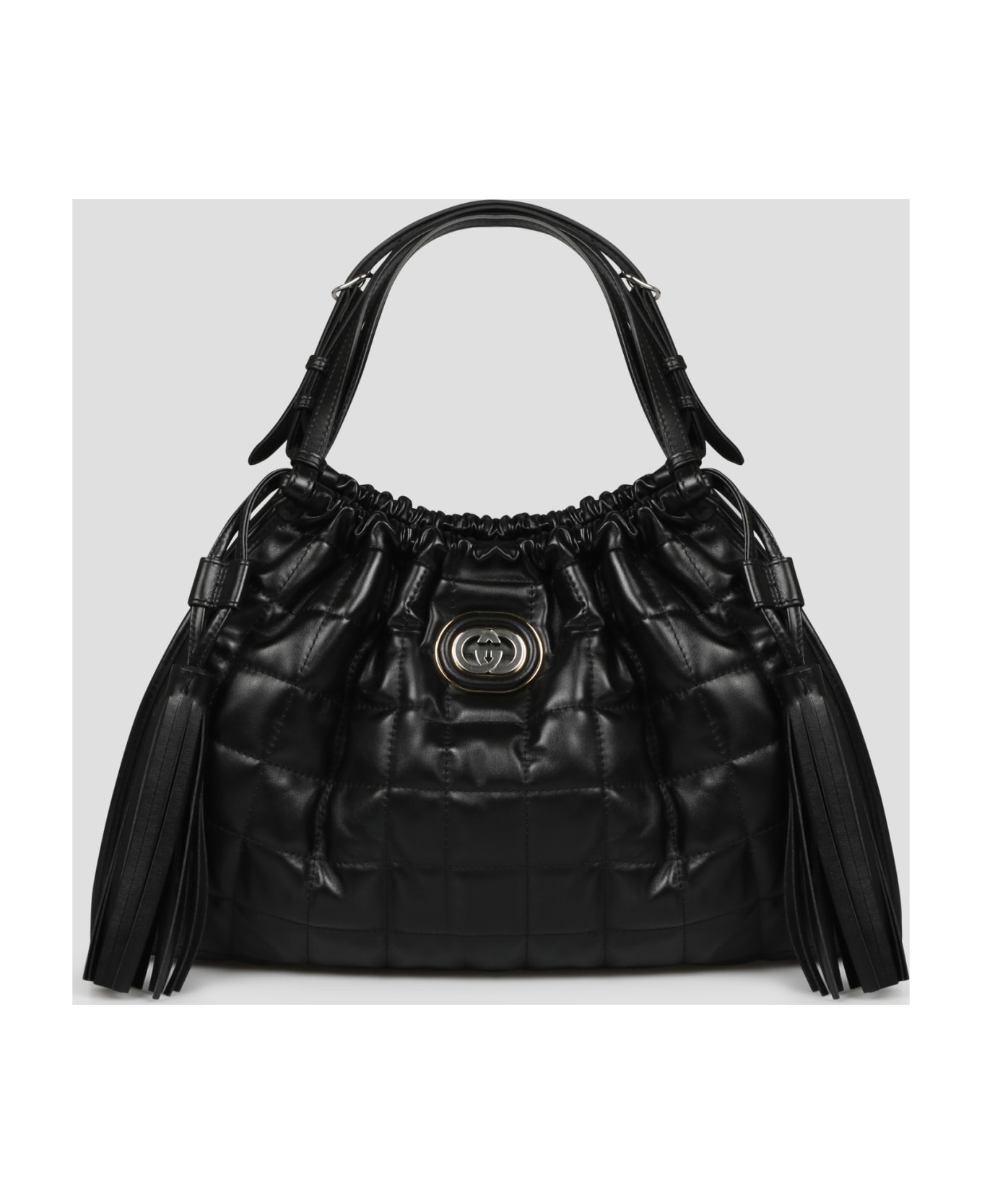 Gucci medium Deco shopping bag in quilted leather. - SS23 - W:43cm H:28cm D:8cm - Double handles (Drop: 19 cm) - Removable chain shoulder strap (Drop: 30 cm) - Two-toned vintage Interlocking G hardware - Magnetic closure - Interior: 1 zip pocket - Made in Italy - Leather