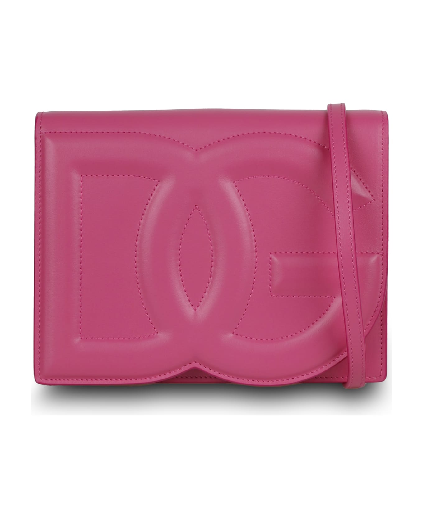 Shoulder bag with DG Logo, Pink color, adjustable and removable shoulder strap, front flap closure with magnetic buttons, embossed logo, single compartment, internal zip pocket, gold-colored details, by Dolce & Gabbana Composition: 100% Leather