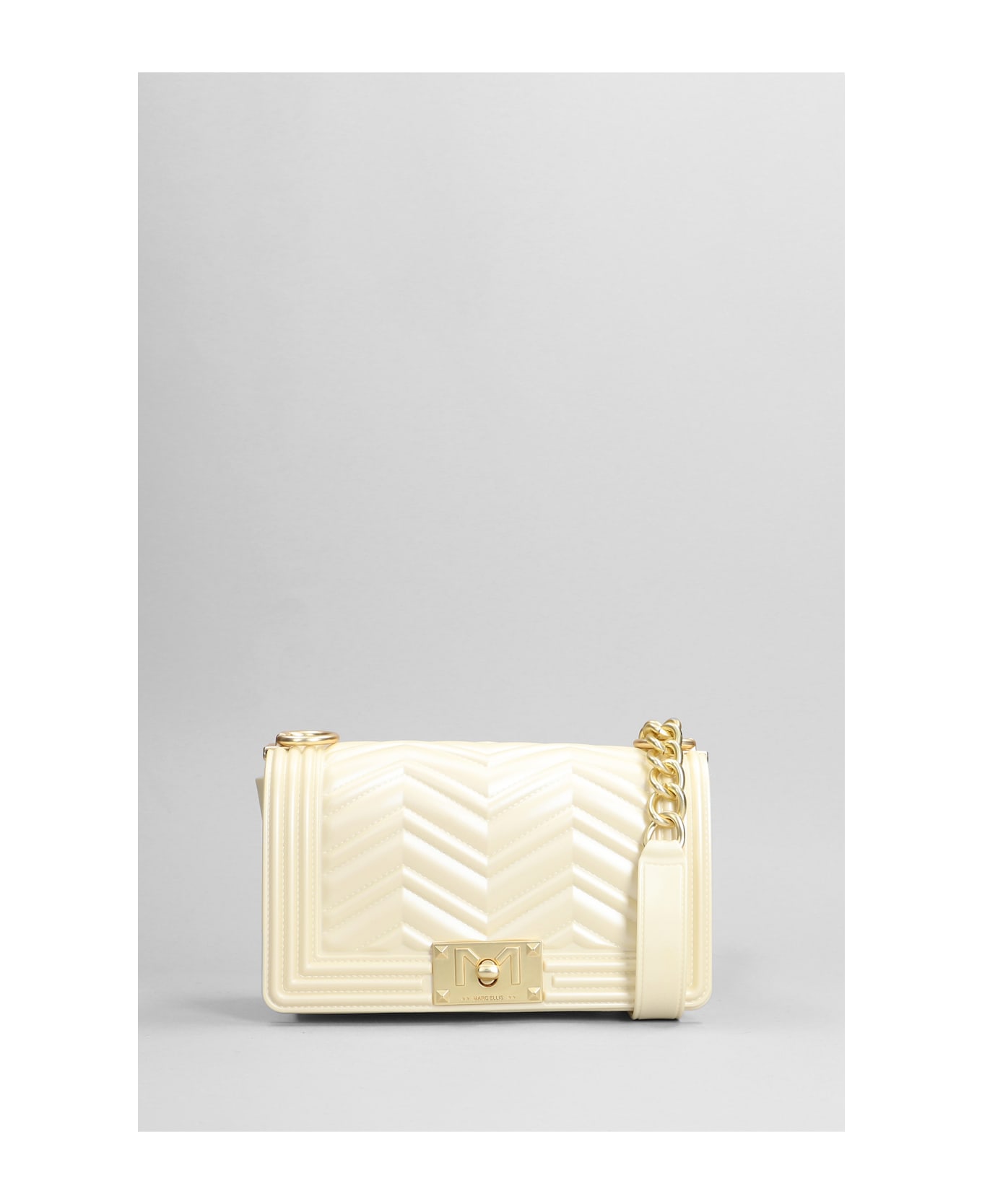 Flat S Manhattan Shoulder bag in beige PVC, chain shoulder strap, push- lock fastening, quilted design, Made in Italy, 100% artificial leather, Height 110 mm, Width 200 mm