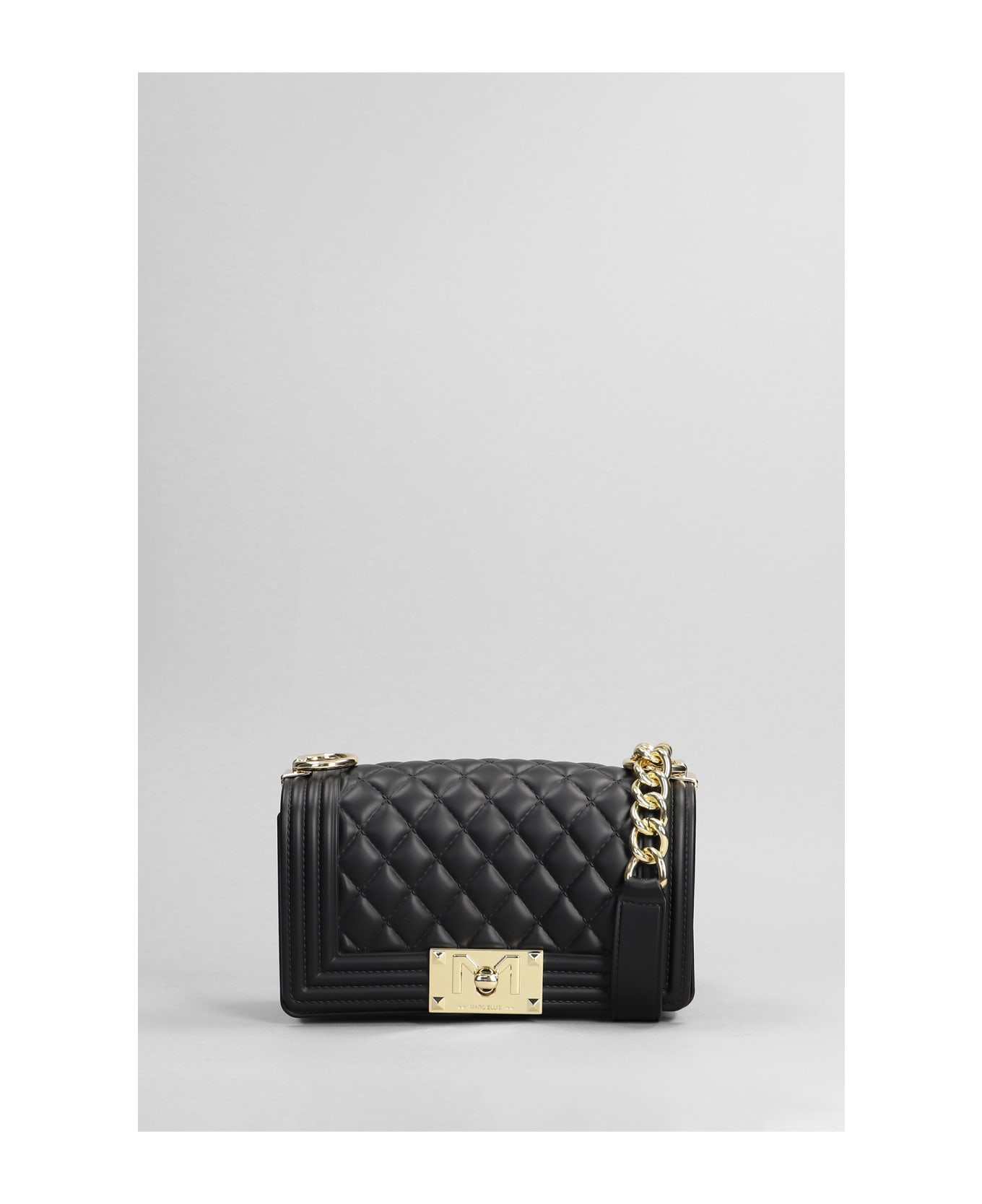 Las Vegas Xs Shoulder bag in black leather, chain shoulder strap, push- lock fastening, quilted design, Made in Italy, 100% leather, Height 100 mm, Width 150 mm